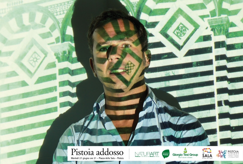 Martedi 27 giugno dalle ore 21 in Piazza della Sala, alle persone presenti in piazza sarà chiesto di raccontare con una frase la propria Pistoia, come la sentono, come la vivono. Su di loro sarà proiettata la policromia del marmo bianco e verde "serpentino" delle famose chiese romaniche pistoiesi come simbolo di appartenenza alla città e verrà scattata una foto nel set allestito in Piazza della Sala; le immagini verranno riprodotte, tramite proiezioni e in contemporanea con l’evento, sui muri di Piazzetta dell’Ortaggio. Inoltre per l’occasione è stata realizzata anche la t-shirt ufficiale di Pistoia Addosso che verrà regalata ai primi 50 partecipanti.