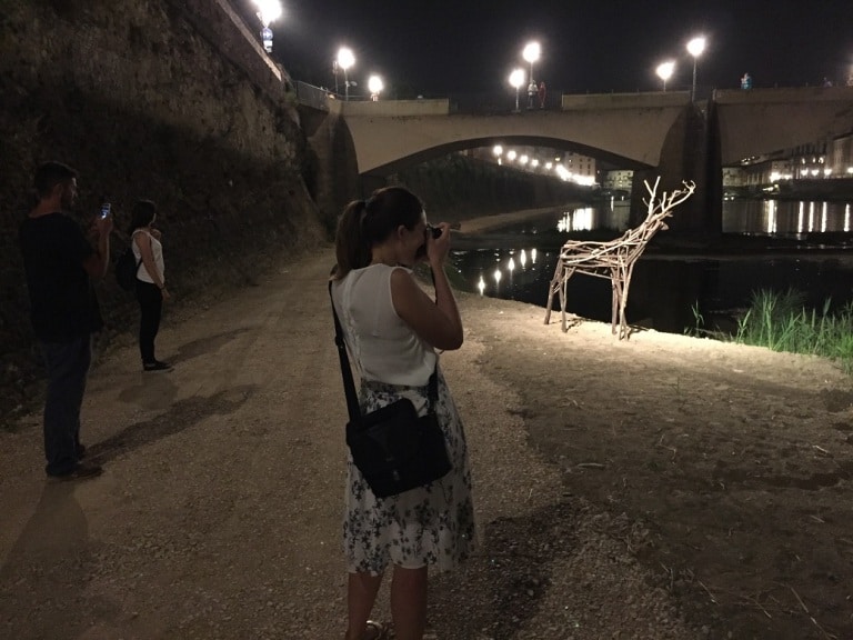 Il percorso sarà impreziosito dalle sculture dell’artista fiorentino Sedicente Moradi, cinque animali tra il reale e il mitologico realizzate con il legno di risulta dell'Arno. Le installazioni sono state realizzate con la legna delle piene del fiume: dalla giraffa alta cinque metri e ispirata a quella che Lorenzo il Magnifico portò a Firenze alla fine del Quattrocento all'unicorno che guarda Ponte Vecchio fino grande coccodrillo e ai due cervi, metà animali metà alberi. Le sculture saranno illuminate di notte grazie al contributo di Silfi.