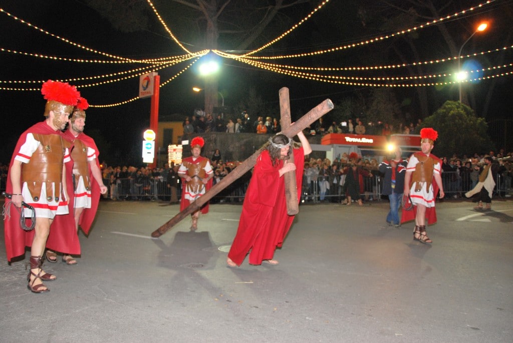 La partenza è prevista da piazza Cesare Battisti e prenderà il via con un "processo", quello che nel sinedrio duemila anni fa vide protagonista in Palestina Gesù Cristo, e si chiude con la crocifissione tra lampi e tuoni ricreati ad arte, nel mezzo una processione di sei chilometri per le vie del paese: sfilano con Gesù Pilato, il presidente del Sinedrio Caifa, Giuda, Longino e Crocifero e poi le donne palestinesi e le dame patrizie, i legionari e sul finire il carro della Madonna.