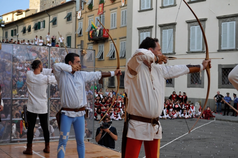 Torna a Pescia il Palio degli Arcieri arrivato alla 38° esima edizione. Una settimana di festeggiamenti che inizieranno lunedì 31 agosto fino a domenica 6 settembre 2015 quando gli arcieri dei quattro rioni della città: Ferraia, San Francesco, San Michele e Santa Maria, si sfideranno all’ultima freccia in una gara avvincente nello splendido contesto di Piazza Mazzini. Questa rievocazione storica medievale affonda le sue radici nel 1339 quando Pescia passò sotto il controllo fiorentino e presero il via le celebrazioni in onore di Santa Dorotea protettrice della città. Da allora furono organizzati per secoli feste popolari e giochi a cavallo fino al 1677, ripresi nel 1978 ma, in considerazione dei tempi, alle aste e ai cavalli si preferì l’uso di archi e frecce anche se a gareggiare sono sempre i quattro storici rioni della città: Ferraia, San Francesco, San Michele e Santa Maria, menzionati negli statuti comunali fin dal 1340.