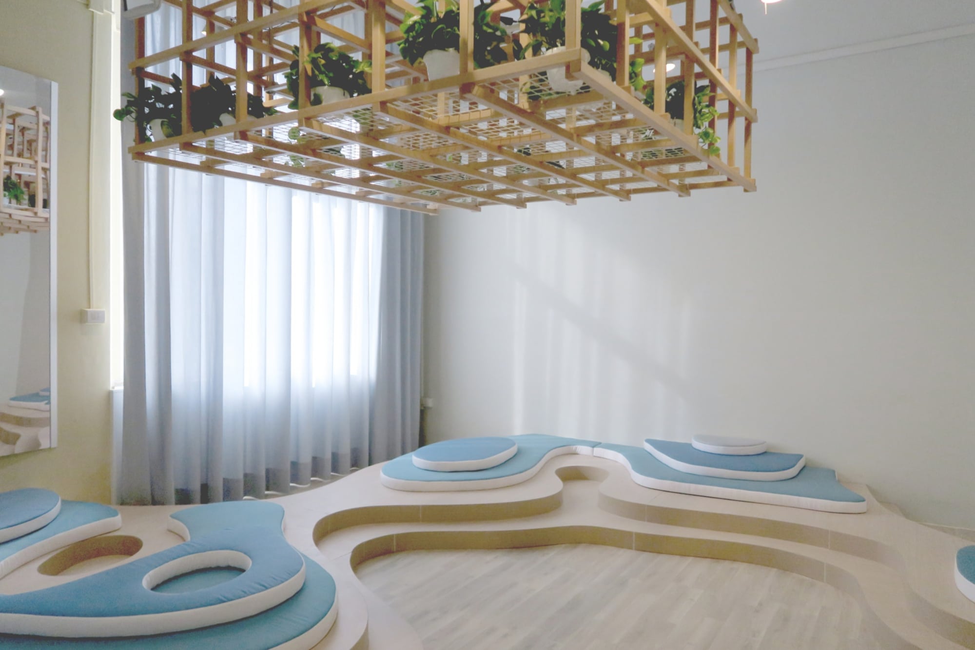 Uno spazio - quello dell'Atelier delle Possibilità - dove si incontrano la 'soft room', nel quale le attività vengono svolte per terra con le pareti completamente libere per la documentazione e le proiezioni e la solid room, rivestita da una struttura modulare ad alto grado di flessibilità e caratterizzata da un grande tavolo a fiore che favorisce la condivisione, lo scambio e il processo creativo. Lo spazio è rivestito in 3 pareti su 4 da una struttura lignea e il sistema modulare permette di aggiungere o sottrarre elementi, garantendo flessibilità e semplicità di riprogrammazione.