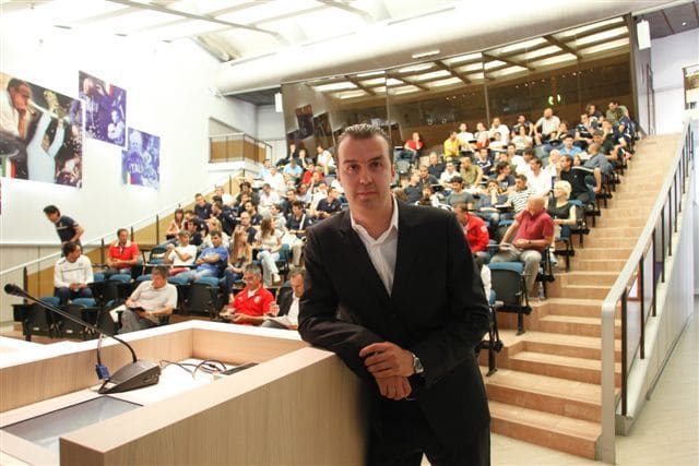 L’Aula magna del Centro Tecnico Figc di Coverciano ha fatto da cornice alla lezione speciale tenuta da Simone Pianigiani per i calciatori che stanno partecipando alla seconda edizione di AIC - “Ancora in carriera”, il progetto ideato dall’Associazione Italiana Calciatori in collaborazione con Studio Ghiretti & Associati e che ha l’obiettivo di sviluppare le competenze professionali dei giocatori a fine carriera per offrire loro un orientamento nella fase di inserimento nel mondo del lavoro dentro e fuori dallo sport. Il ct della Nazionale di pallacanestro e coach della Montepaschi Mens Sana Siena è stato tra i docenti del secondo dei tre moduli dell’edizione 2012 del progetto, identificati simbolicamente con termini che richiamano il mondo del calcio (“difesa”, “centrocampo” e “attacco”).