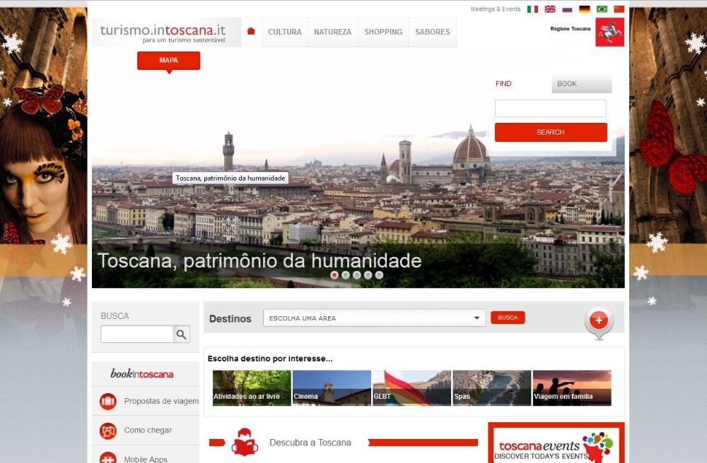 Collegato al sito del turismo c’è anche www.toscanaevents.it, la piattaforma che racchiude il panorama di concerti, musical, sagre, rappresentazioni teatrali, convegni, eventi sportivi, congressi in programma ogni giorno in Toscana. Il sito, realizzato da Regione Toscana attraverso Fondazione Sistema Toscana, è aperto al contributo di istituzioni, associazioni di categoria, operatori turistici che possono inserire autonomamente i loro eventi.
