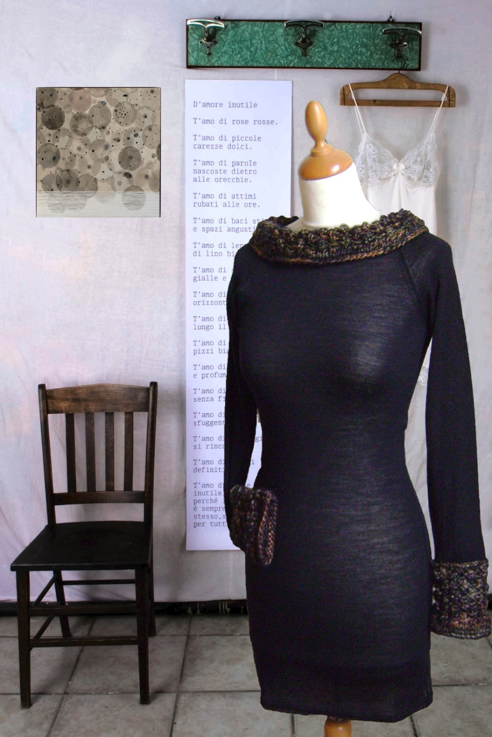 Il fil rouge che unisce i capi di maglieria di Caterina Perotti, e la ricerca artistica di Tamara Inzaina, rispondono al bisogno di “vestire” il mondo cercando di trasmettere sensazioni di benessere, di renderlo meglio vivibile. Così che Tamara Inzaina, utilizza i suoi filati per vestire i suoi “moduli”, e come nei capi di Caterina Perotti, vi è la percezione come se si tessesse una trama intorno alla realtà, di quella si svelano solo alcuni aspetti, celandone altri. Quando questi affiorano nitidi, come da un’ampia finestra, l’effetto è gioioso, armonioso, sensuale senza ostentazione.