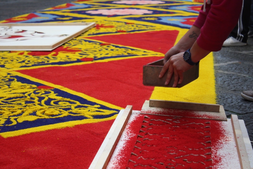 Sono più di cinquecento le fotografie che hanno fatto fare ai tappeti di segatura di Camaiore il giro sui social network. E' stato un successo il challenge fotografico organizzato su Instagram dall'Associazione Tappeti di Segatura, nata per valorizzare quest'antica tradizione: ogni anno per la processione del Corpus Domini il borgo della Versilia decora le strade del suo centro storico con tappeti di segatura colorata, vere opere d'arte che raffigurano scene sacre ma non solo.