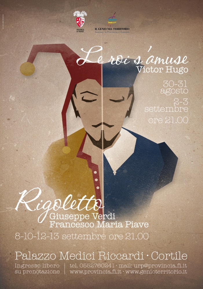 Le opere in programma sono due: “Le roi s’amuse” di Victor Hugo (in scena nei giorni 30 e 31 agosto, 2 e 3 settembre), dramma storico in cinque atti in versi rappresentato per la prima volta nel 1832 alla Comédie-Francaise, e “Rigoletto” di Giuseppe Verdi, opera in tre atti su libretto di Francesco Maria Piave, tratta dallo stesso dramma di Hugo (8,10,12,13 settembre). Tutti gli spettacoli sono fissati per le 21.00 nel Cortile di Michelozzo di Palazzo Medici Riccardi.