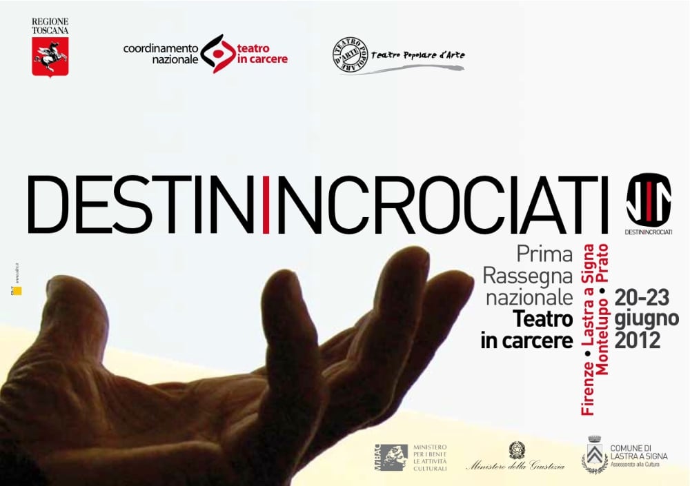Dal 20 al 23 giugno 2012 si terrà in Toscana la prima rassegna nazionale di Teatro in Carcere dal titolo “Destini Incrociati”. L’iniziativa è realizzata dal Coordinamento Nazionale teatro in carcere e dal Teatro Popolare d’Arte col sostegno della Regione Toscana - che da circa quindici anni investe su questo tipo di esperienze - il patrocinio del Ministero della Giustizia, del Ministero dei Beni Culturali e si avvale della collaborazione di Fondazione Sistema Toscana e di intoscana.it. intoscana.it racconterà l'evento attraverso una pagina speciale creata ad hoc (www.intoscana.it/teatroincarcere) nella quale già confluiscono gli aggiornamenti e tutti i video, anche integrali, degli spettacoli e le interviste ai protagonisti. Il Portale ufficiale della Toscana affianca da diversi anni la Regione nel progetto Teatro in Carcere. La Toscana è infatti l’unica regione in Italia a sostenere un progetto coordinato “di rete” delle attività di spettacolo all’interno degli istituti penitenziari.
