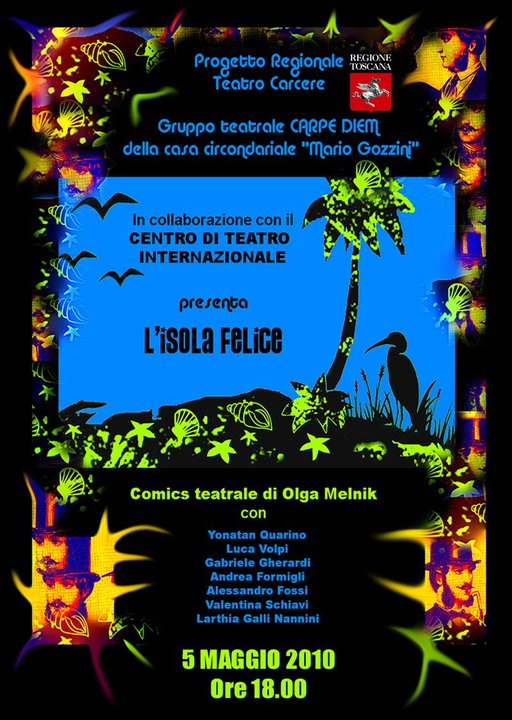 Attualità /ARTICOLO Teatro in carcere: "L'isola felice" di Olga Melnik Lo spettacolo messo in scena dal gruppo teatrale Carpe Diem della casa circondariale Mario Gozzini di Solliccianino / Redazione Mar 10 Dicembre, 2013 isola felice Close GDPR Cookie Settings Privacy Overview Strictly Necessary Cookies Powered by GDPR Cookie Compliance Privacy Overview This website uses cookies so that we can provide you with the best user experience possible. Cookie information is stored in your browser and performs functions such as recognising you when you return to our website and helping our team to understand which sections of the website you find most interesting and useful. Strictly Necessary Cookies Strictly Necessary Cookie should be enabled at all times so that we can save your preferences for cookie settings. Enable or Disable Cookies Enabled Disabled If you disable this cookie, we will not be able to save your preferences. This means that every time you visit this website you will need to enable or disable cookies again.