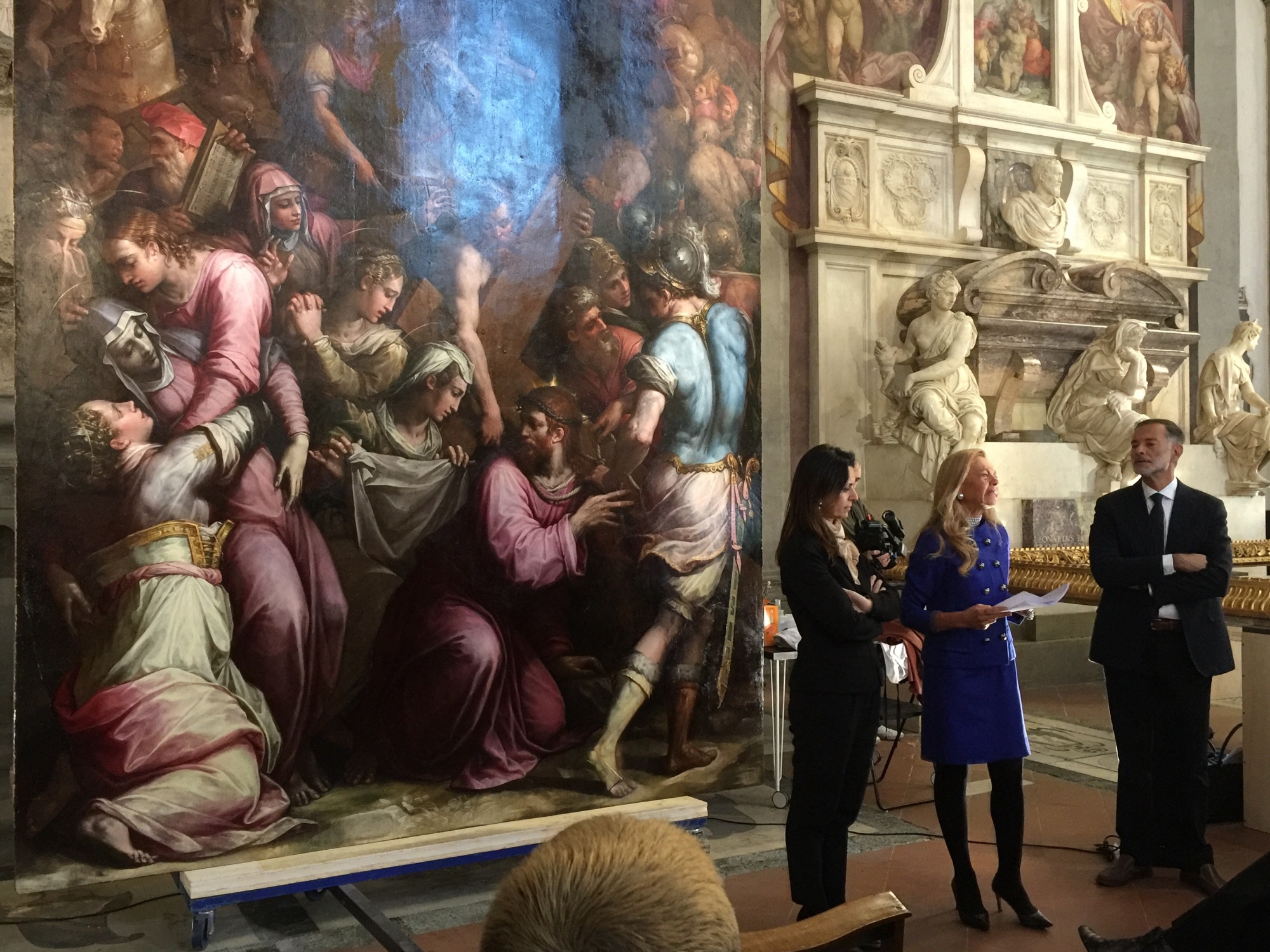Il restauro ha rivelato particolari interessanti come il volto di Michelangelo e di Rosso Fiorentino e numerose citazioni michelangiolesche come una delle pie donne ripresa dalla Sibilla Libica della Cappella Sistina. Michelangelo è nascosto sotto le sembianze di Nicodemo ma è riconoscibile per la capigliatura ricciuta e per il caratteristico profilo del naso. Un omaggio del Vasari all’amico caro che lui definiva ‘il divino e meraviglioso artista’.