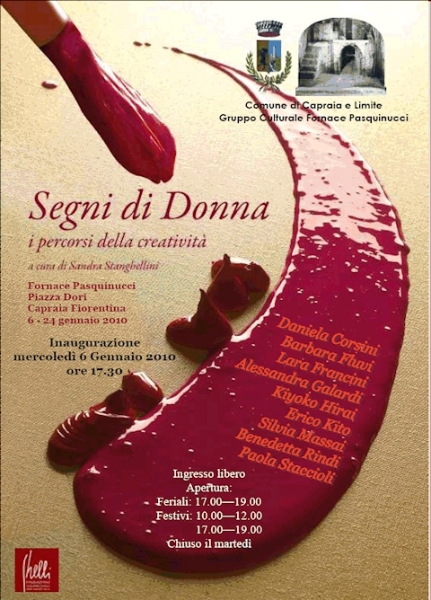 Il centro culturale di piazza Dori a Capraia Fiorentina debutta alla grande con una mostra e tre eventi che fanno da apertura a un calendario ricchissimo, che coprirà tutti i mesi del nuovo anno, agosto escluso, con oltre venti eventi collaterali a esposizioni d’arte contemporanea d’alto livello. L’ouverture è tutta in ‘rosa’ con la mostra “Segni di donna”, a cura della Fondazione di Giuliano Ghelli e pensata da Sandra Stanghellini. L’esposizione sarà ospitata a Capraia dal 6 al 24 gennaio e gode dei patrocini della Provincia di Firenze e del Comune di Capraia e Limite.