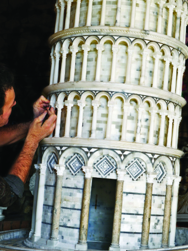 La Torre Pendente in Alabastro di Volterra è realizzata in scala 1 : 25.