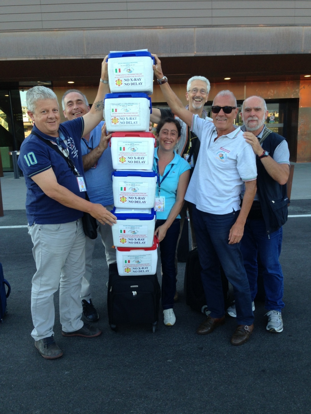 Le difficoltà principali sono di interazione con persone che non sanno che cosa stiamo facendo e non hanno ben chiara la nostra missione. Viaggiando molto in aereo siamo un po’ l’antitesi del passeggero tipo. Ad esempio il nostro box con gli elementi refrigeranti non deve passare sotto i controlli a raggi x oppure noi trasportiamo quantità di liquido superiori quattro volte a quelle consentite. Questo ci porta molto spesso a confrontarci con gli addetti delle compagnie aeree o degli aeroporti per far si che certe necessità, fondamentali per la riuscita del trasporto, vengano rispettate.