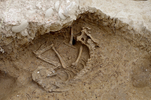 Il ritrovamento del cane, in buono stato di conservazione e deposto su un fianco in una fossa ricavata all’interno della fondazione del muro perimetrale ovest del balneum, costituisce la rara occasione per aprire uno spiraglio sulle operazioni legate ai riti di fondazione nel mondo antico.