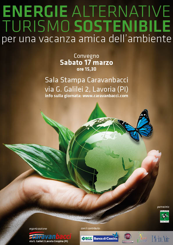 Sabato 17 marzo alle ore 15.30 presso la Sala Stampa Caravanbacci (via G. Galilei, 2 - Lavoria - PI) si cercherà di spiegare i vantaggi dell’uso delle fonti energetiche alternative e di un nuovo modo di fare turismo che rispetti l’ambiente e accresca l’economia del territorio, nuovo modo di cui il turismo del veicolo ricreazionale è elemento fondamentale. Il camper non inquina, non consuma il territorio, scopre e rilancia i piccoli comuni fondamentali per il benessere sociale e la vivibilità, porta ad una maggiore conoscenza della cultura e delle tradizioni dei luoghi visitati.