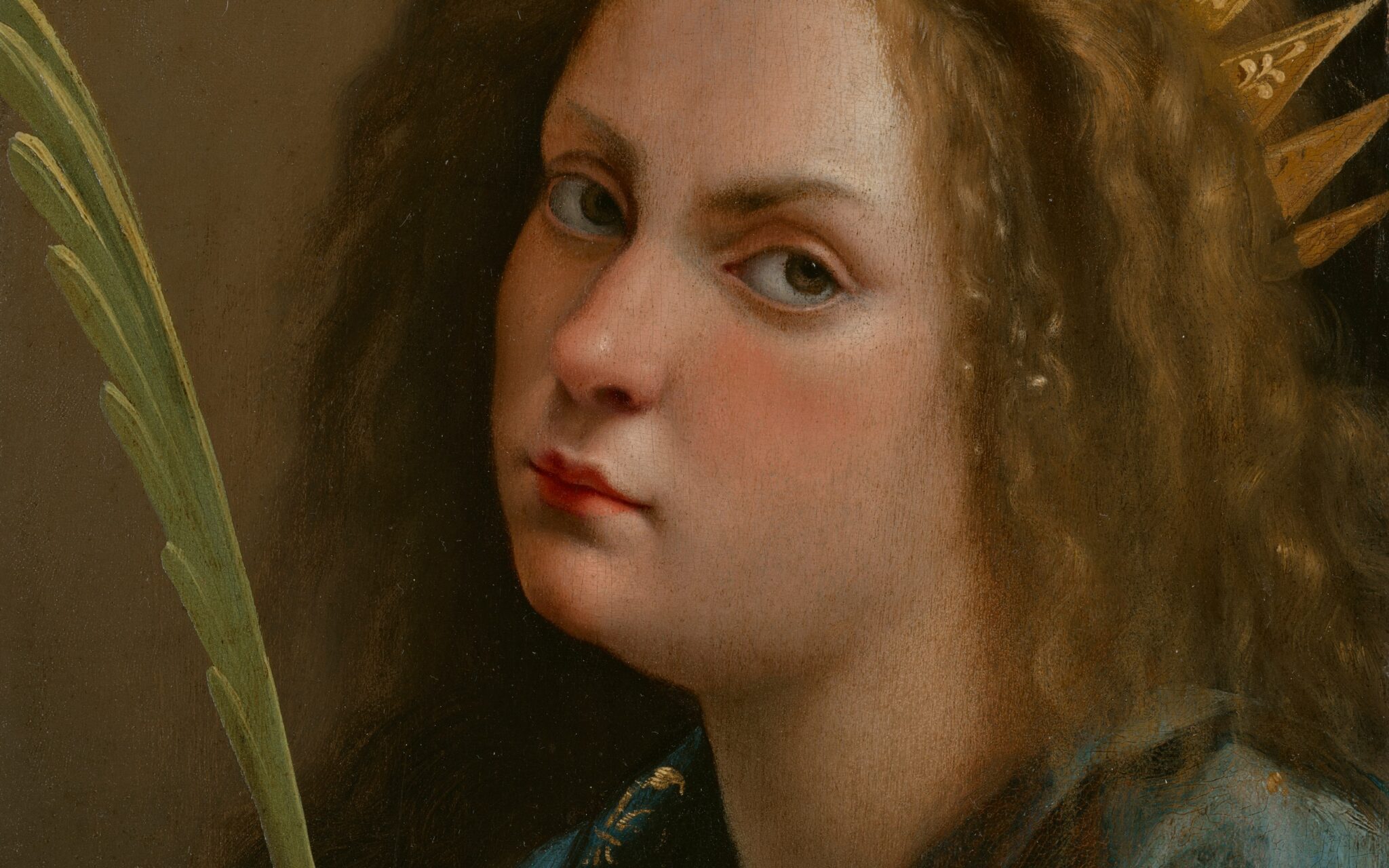 Ritrae una giovanissima Artemisia nei panni della Santa, che tiene in mano la palma del martirio e la ruota dentata. Gli aspetti religiosi, tipici dell’iconografia tradizionale, mettono ancora più in risalto lo sguardo vivo e fermo della giovane come a mostrare la sua autodeterminazione come donna e artista.
