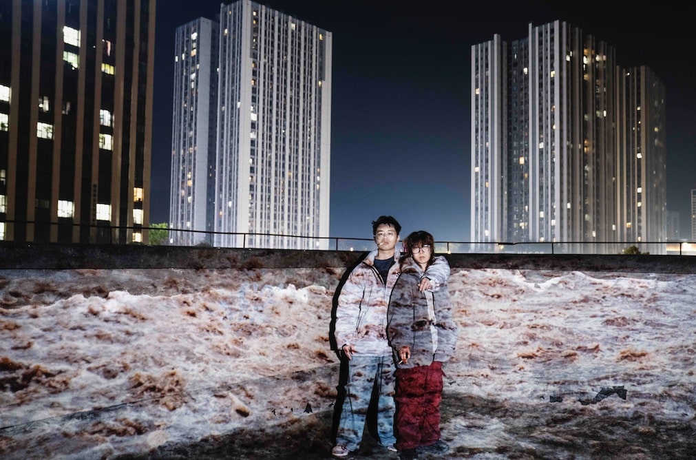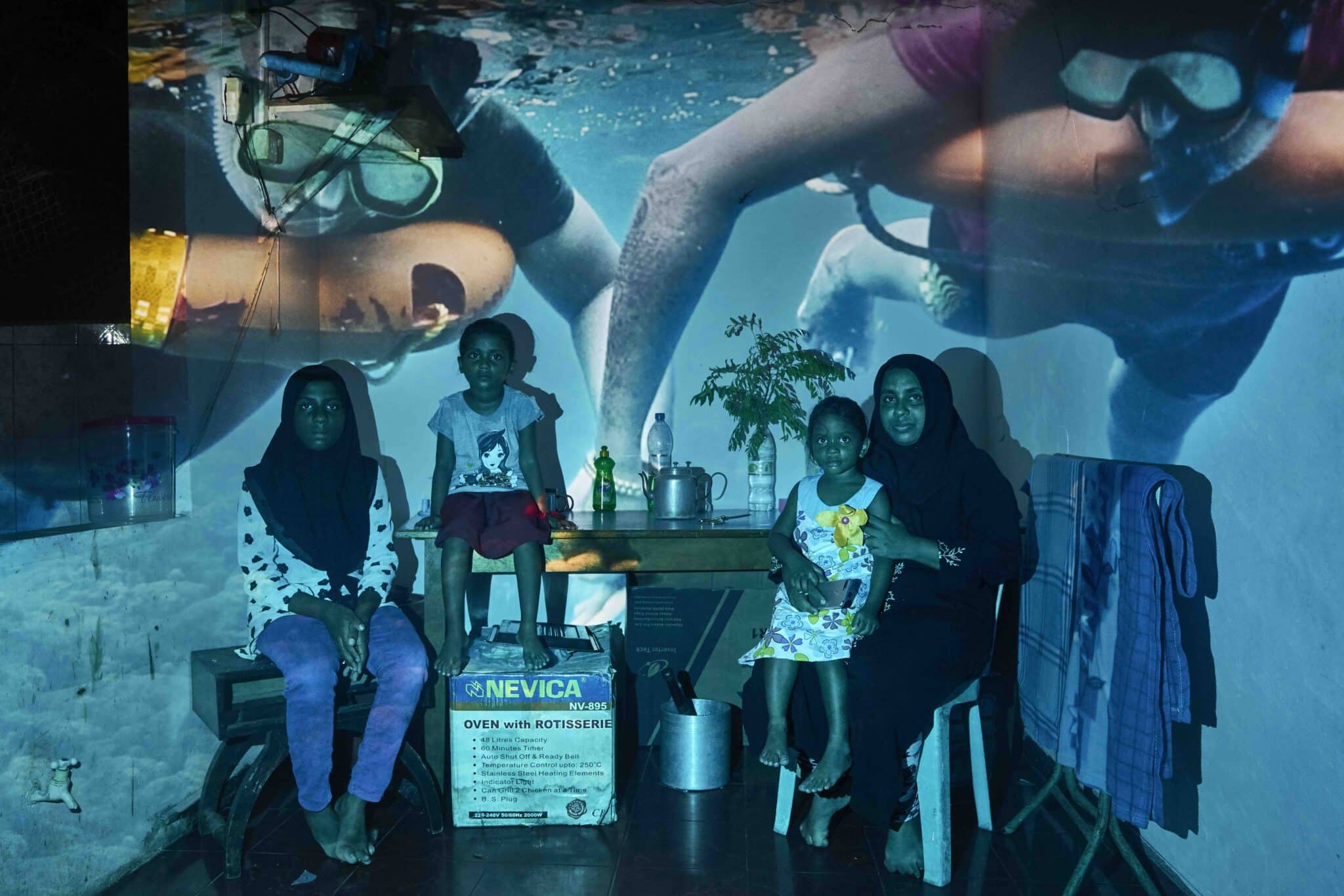 “Atlas of the New World – spiegano Edoardo Delille e Giulia Piermartiri – è un progetto fotografico che pone una domanda fondamentale: come sarà l’atlante che le future generazioni consulteranno? Utilizzando i dati climatici delle Nazioni Unite abbiamo viaggiato in Paesi del mondo destinati a subire significative trasformazioni morfologiche entro la fine del secolo. L’idea è quella di rendere visibili oggi questi imminenti cambiamenti e dare forma tangibile ai possibili futuri dei nostri paesaggi. La fotografia è solitamente un mezzo che rappresenta il presente o il passato; in questo caso rappresenta il futuro. La tecnica utilizzata è analogica. Per ogni luogo abbiamo selezionato immagini che potessero rappresentare il probabile futuro. Queste sono state poi integrate in delle diapositive a sua volta inserite in un flash sincronizzato con la fotocamera. Nel momento dello scatto la fotocamera registra così simultaneamente la scena reale e la sua proiezione futura, rivelata in un lampo. Chi è nella foto non percepisce la scena che gli viene proiettata addosso proprio perché è un flash, così come noi tutti non ci rendiamo conto del futuro che stiamo costruendo. Il risultato sono immagini complesse, quasi oniriche, in cui presente e futuro si sovrappongono, trasmettendo immediatamente la portata del cambiamento climatico”.