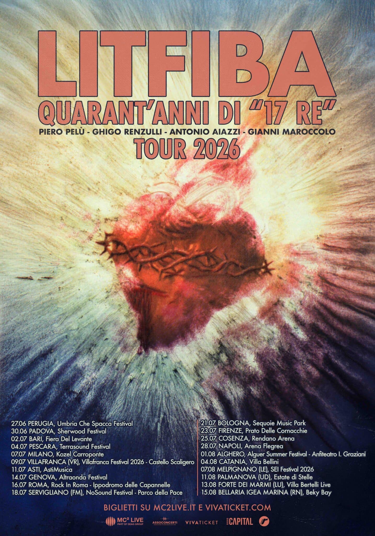 Tra giugno e luglio 2026 è in programma un tour di 20 date in giro per l’Italia per celebrare i quarant’anni di “17 Re”, il disco che ha segnato una svolta epocale nel rock italiano e consacrato la band fiorentina a livello nazionale e europeo.