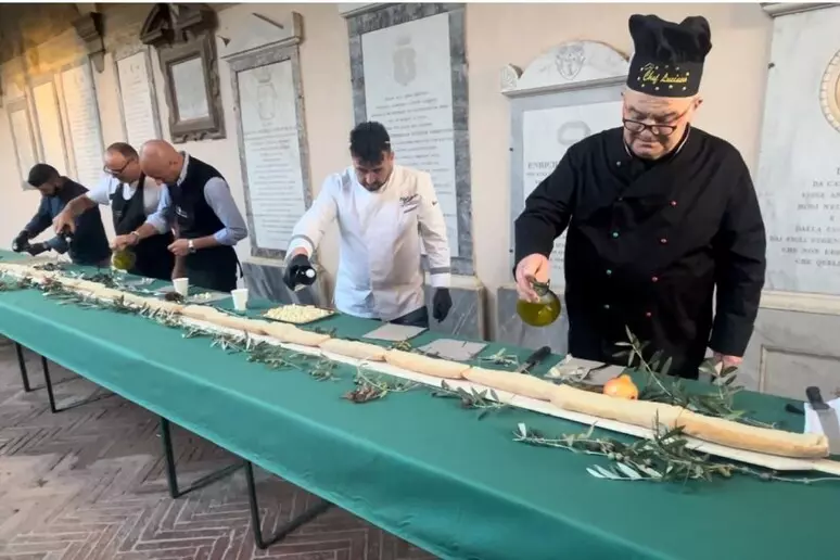 Una maxi-bruschetta lunga 75 metri, lungo il chiostro di San Francesco a Castiglion Fiorentino (Arezzo), tre in più di quella di Benevento che detiene il record mondiale.