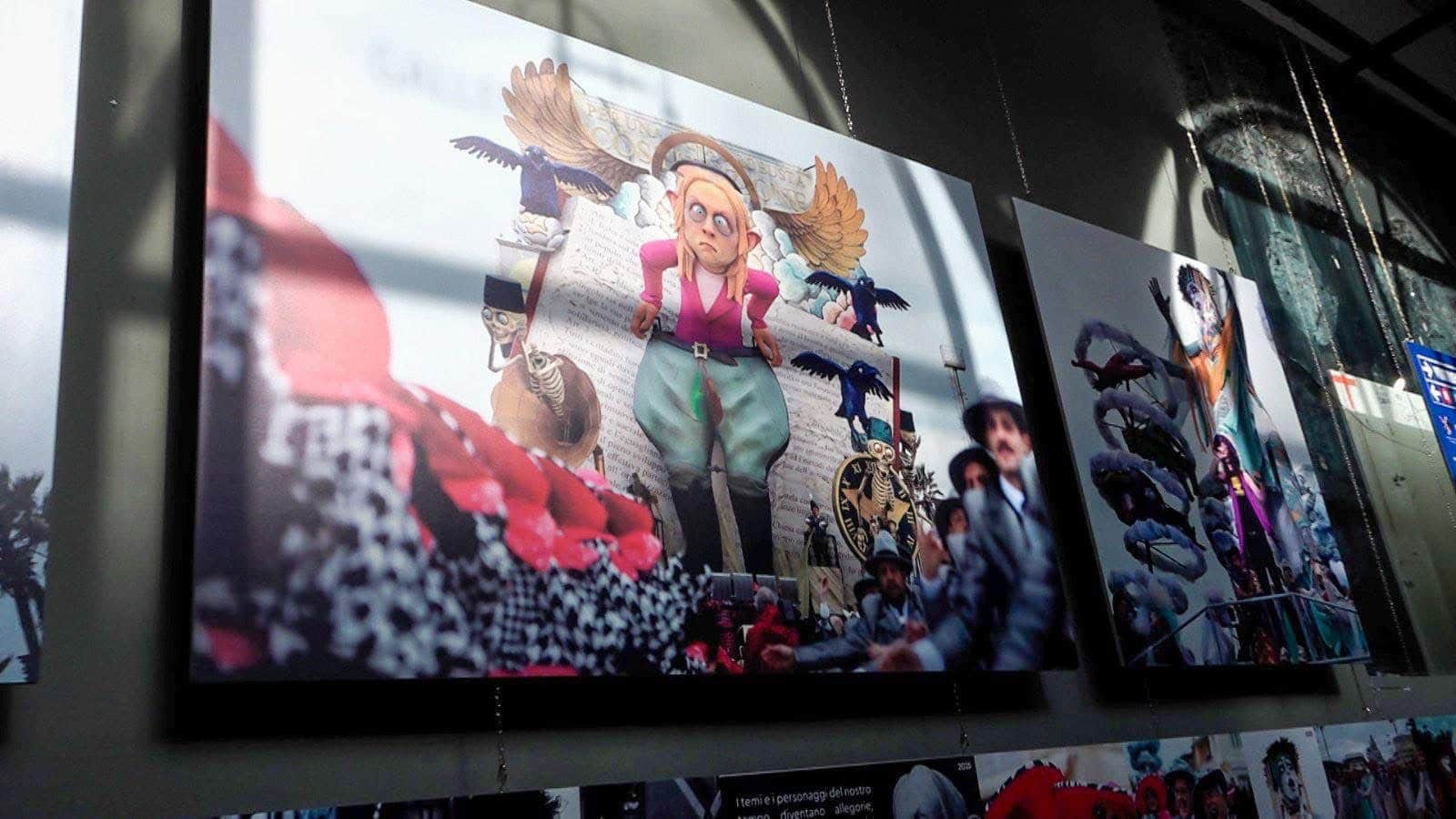 Le immagini documentano il lavoro dei maestri viareggini, dell’allegoria che prende forma dai bozzetti fino alla cartapesta e alle forme monumentali dei carri che evocano sarcasmo, critica sociale e attualità. Una parte è poi dedicata al passato con l’Archivio Storico del Museo del Carnevale che si alterna alle icone popolari, molto più che simboliche, della tradizione partenopea: Totò, Maradona e Pulcinella.