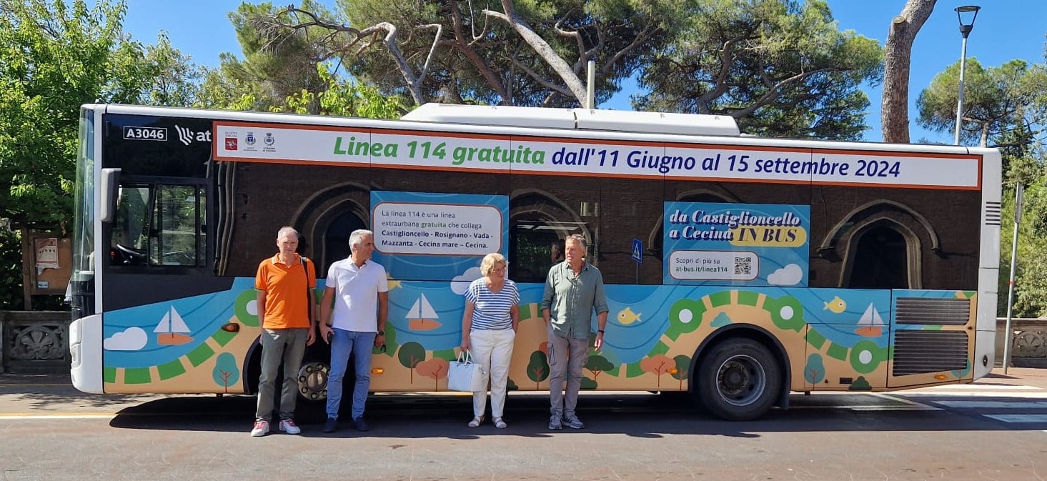 Ieri si è svolta la presentazione del servizio e della apposita campagna di comunicazione e promozione realizzata da AT alla presenza della Sindaca di Cecina Lia Burgalassi, del Sindaco di Rosignano Marittimo Claudio Marabotti; e per AT del responsabile movimento di Autolinee Toscane per la Provincia di Livorno Alessandro Giardi e del coordinatore area comunicazione, marketing e brand di Autolinee Toscane Riccardo Nannipieri.