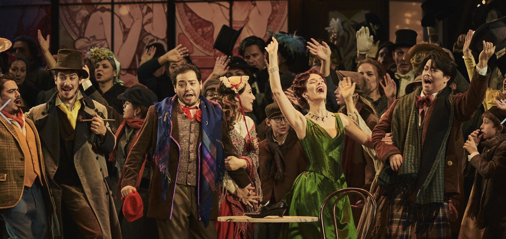 Torna sulle scene del Maggio una fra le più amate opere del repertorio italiano: La Bohème, il capolavoro di Giacomo Puccini, su libretto di Giuseppe Giacosa e Luigi Illica, ispirato al romanzo di Henri Murger Scènes de la vie de bohème. Firmata dalla regia di Bruno Ravella, l’allestimento trova Rodolfo, Mimì, Marcello, Musetta e gli altri protagonisti nella Parigi della fine del XIX secolo: lo spaccato della soffitta di Rodolfo e Marcello, dove si ambienta il primo quadro dell’opera, è semplice e essenziale negli spazi, mentre nel secondo quadro a dominare la scena è un grande semicerchio ricco di luci, con lo scheletro della soffitta del primo quadro che diventa la struttura del celebre Café Momus. Anche il terzo quadro è minimalista nella sua struttura: l’ambientazione della scena ambientata a La Barriera d’Enfer è formata da una piccola costruzione in legno, una sbarra e una panchina.
