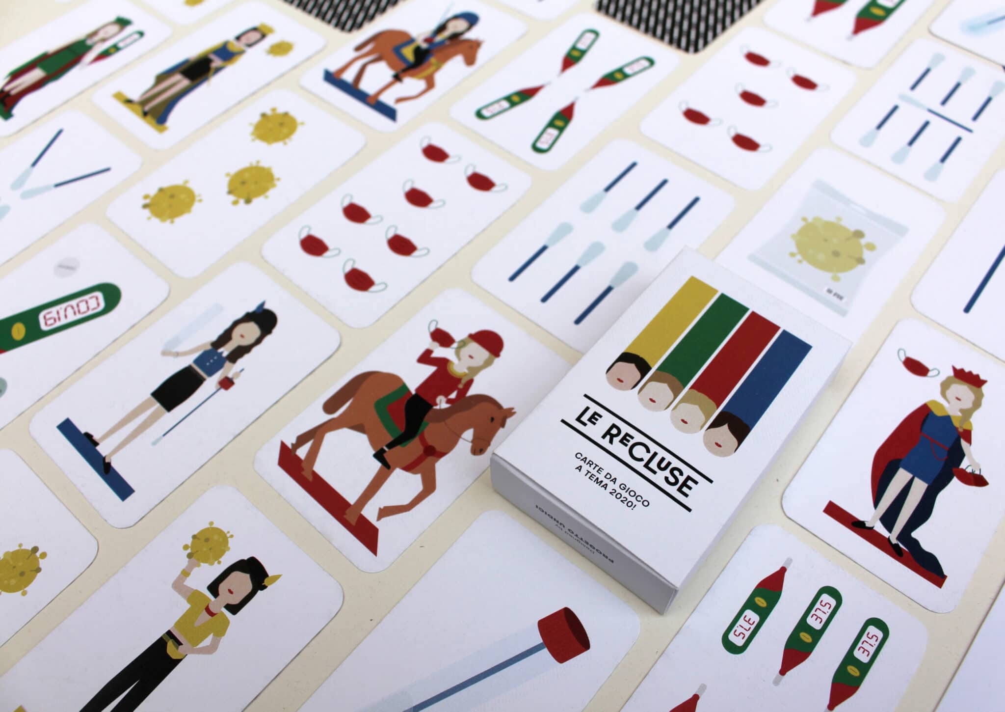 A fine agosto 2020 Laura Marianera ha trascorso 40 giorni in isolamento dopo aver contratto il Covid-19. Per 40 giorni tutto quello che ha visto sono stata il suo letto e la sua scrivania. Da questa esperienza è nato fortissimo il desiderio di “inventarsi” qualcosa. Sono nate così “Le Recluse” carte da gioco napoletane ridisegnate con la simbologia del Coronavirus. La spada è diventata un tampone, il bastone un termometro, la coppa una mascherina e i denari germi virali.