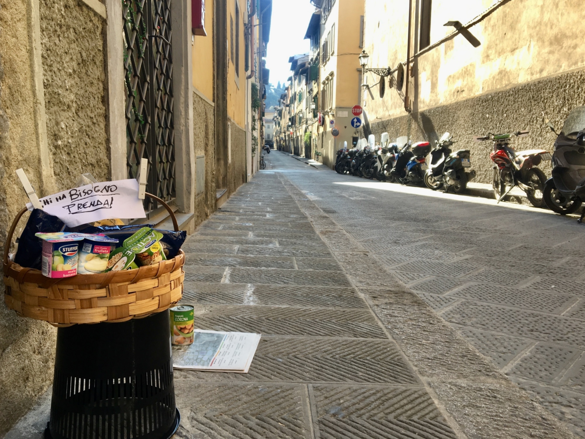In Oltrarno chi volesse partecipare alle donazioni può approfittare del cesto in via del Campuccio e di quello in via dei Serragli, posizionato dal gruppo Sostegno alimentare San Frediano che come spiega uno dei suoi membri, Flora Missoni, vuole “creare una rete di famiglie da aiutare settimanalmente nel quartiere, una rete che duri nel tempo e spinga anche le persone ad aiutarsi a vicenda.”