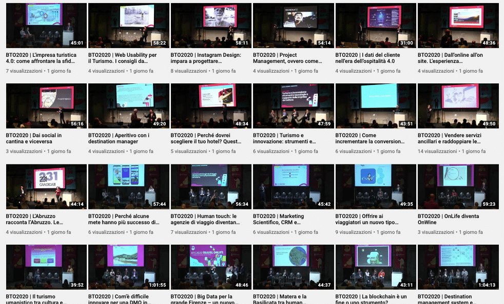 BTO – Buy Tourism Online mette online tutte le registrazioni video degli interventi dei relatori, le loro presentazioni e centinaia di foto dell’edizione 2020. L’evento leader in Italia sul binomio travel online e innovation ha deciso di rendere fruibili gratuitamente moltissimi contenuti della passata edizione svoltasi il 12 e 13 febbraio alla Stazione Leopolda di Firenze.