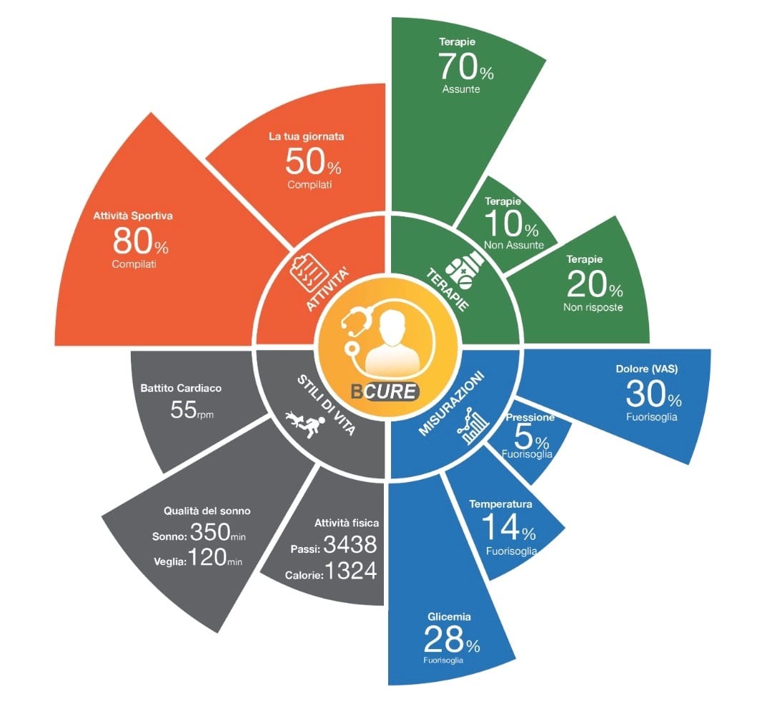 L’app ‘BCure’ è un’applicazione costruita da Estar (Ente di supporto tecnico amministrativo regionale) dall’Unità operativa Sviluppo software e consente, al paziente e a tutti gli altri attori coinvolti nel suo processo di cura (familiare o care-giver, medico di famiglia, assistenza domiciliare integrata, medico specialista), di introdurre tutti gli indicatori di salute utili al suo monitoraggio, di verificare l’aderenza terapeutica (assunzione autonoma/somministrazione della terapia domiciliare), il rilevamento di parametri biometrici, l’osservanza dei protocolli terapeutici, la gestione della dieta, l’attività sportiva effettuata, gli effetti dello stile di vita sul sonno, con il risultato di un controllo completo sul proprio andamento clinico quotidiano.