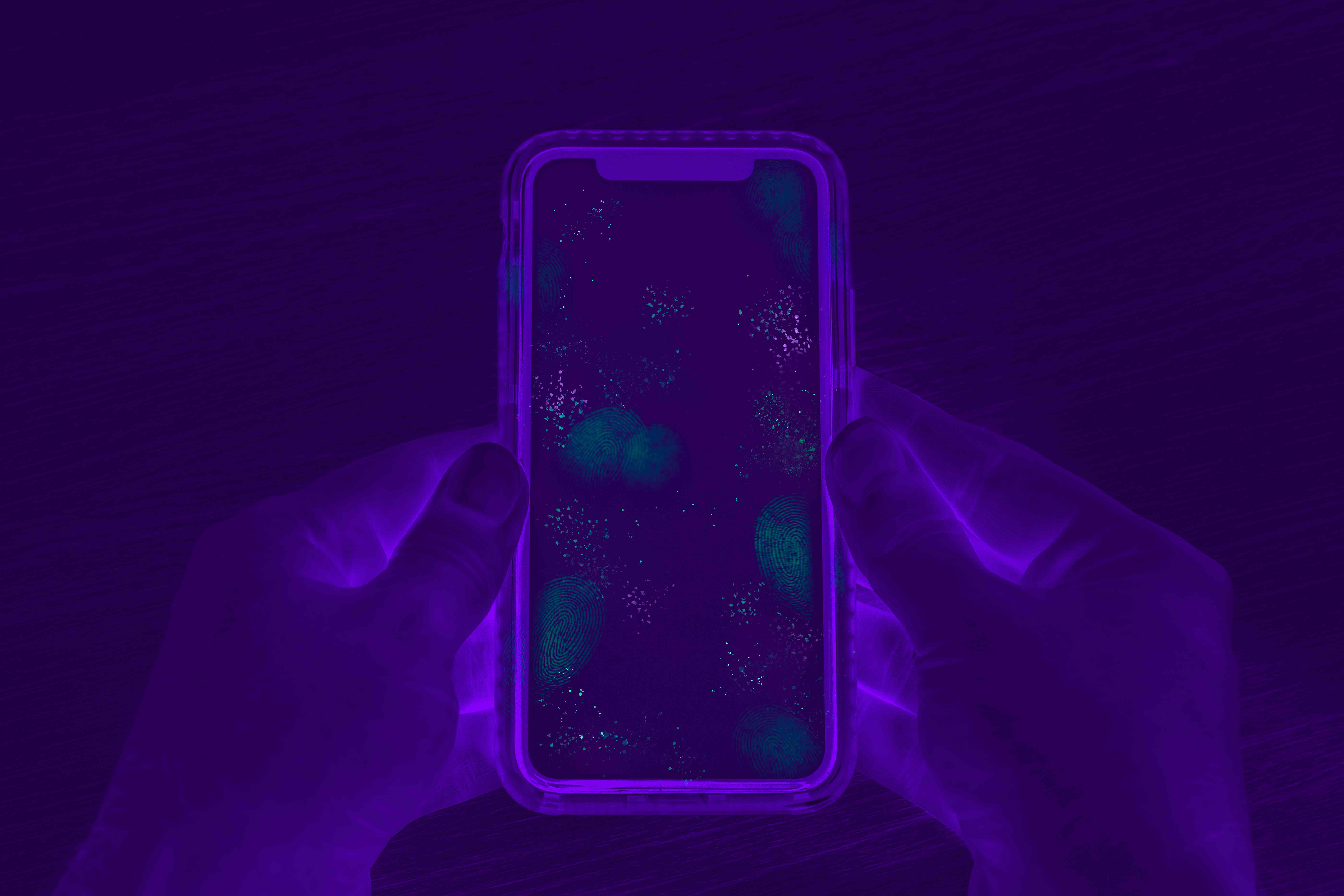 Invisible germs and bacteria on smartphone screen exposed by UV Blacklight inspection