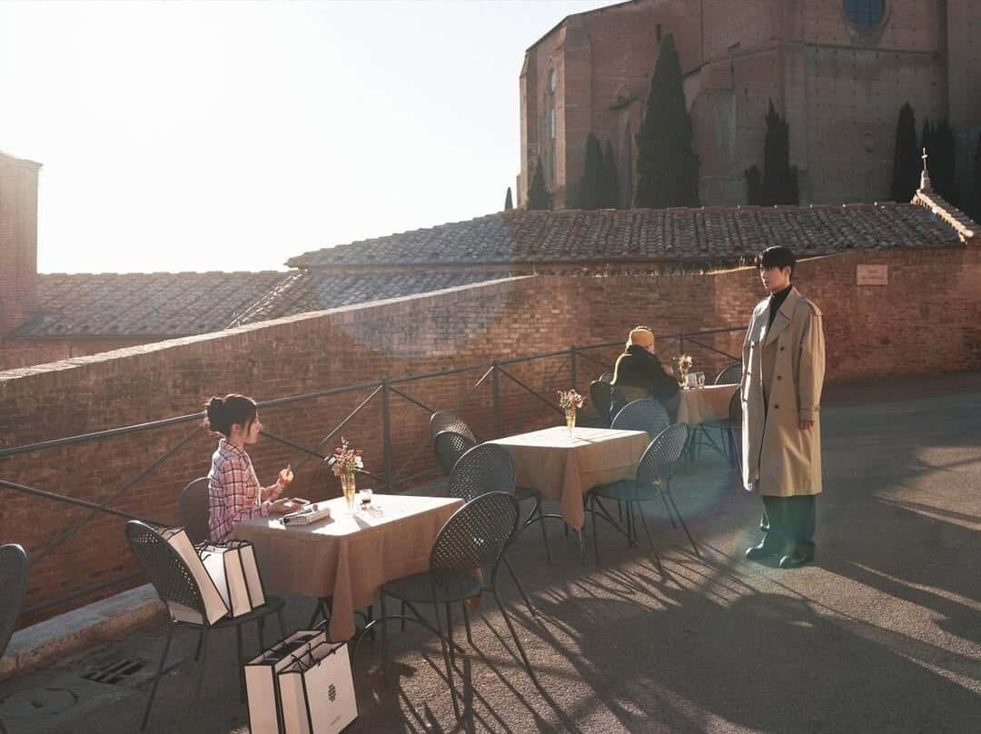A Firenze, alcune scene sono state girate all’interno della Libreria Giunti Odeon, ex Cinema Odeon: uno spazio iconico, sospeso tra memoria e contemporaneità, che diventa scenario di momenti più intimi tra i protagonisti. Siena è riconoscibile grazie a Piazza del Campo, mentre Montalcino, con il suo tessuto urbano e il paesaggio collinare, contribuisce a restituire quell’immaginario toscano fatto di bellezza stratificata e tempo dilatato, particolarmente affine alla sensibilità del K-drama.