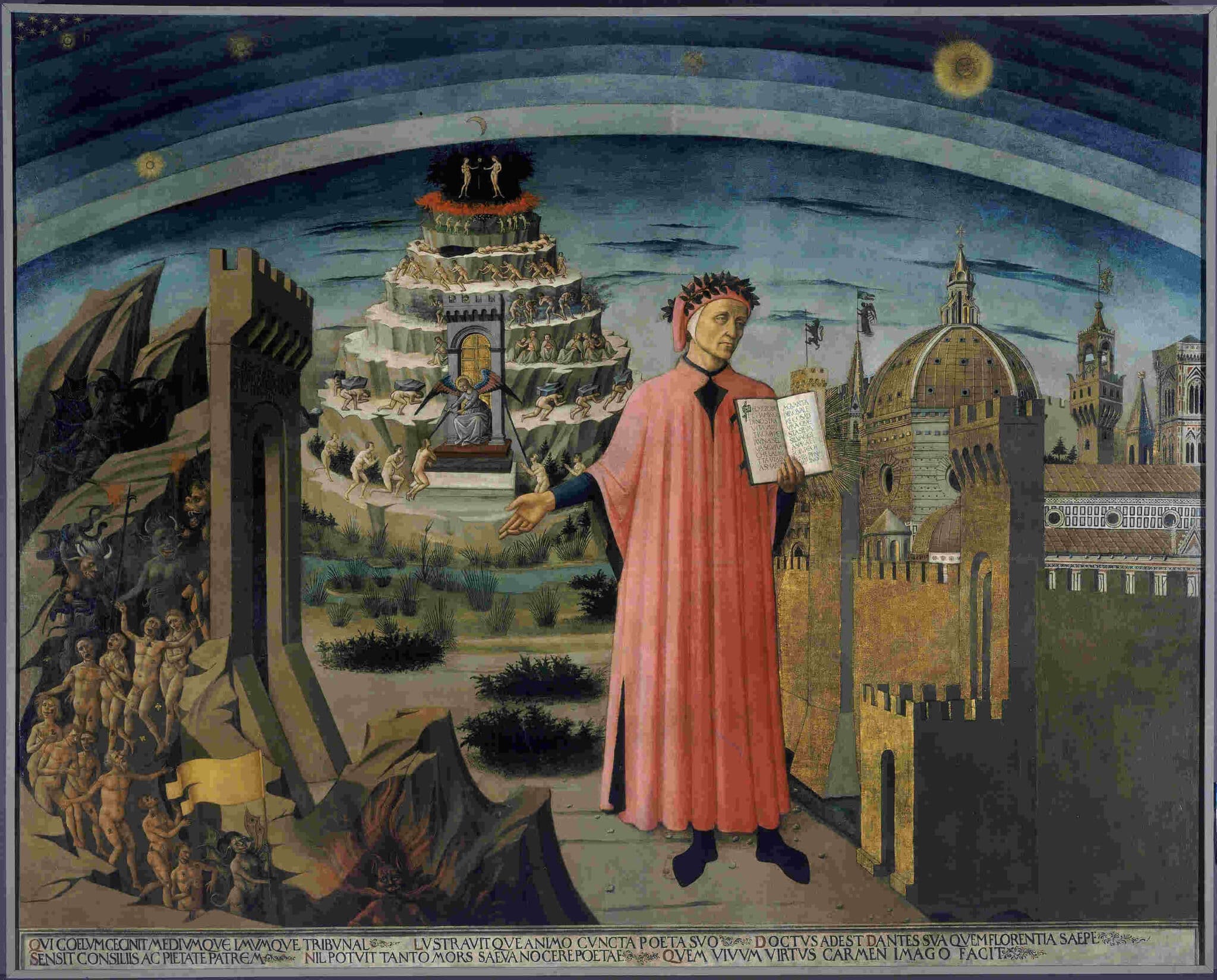L’Opera di Santa Maria del Fiore commissionò questo “monumento dipinto” nel 1465 per celebrare i 200 anni dalla nascita di Dante e esaltare così la memoria del poeta nella principale chiesa fiorentina. L’obiettivo del progetto avviato da Coluccio Salutati era trasformare il Duomo nel Pantheon delle glorie civili, letterarie e religiose della città.
