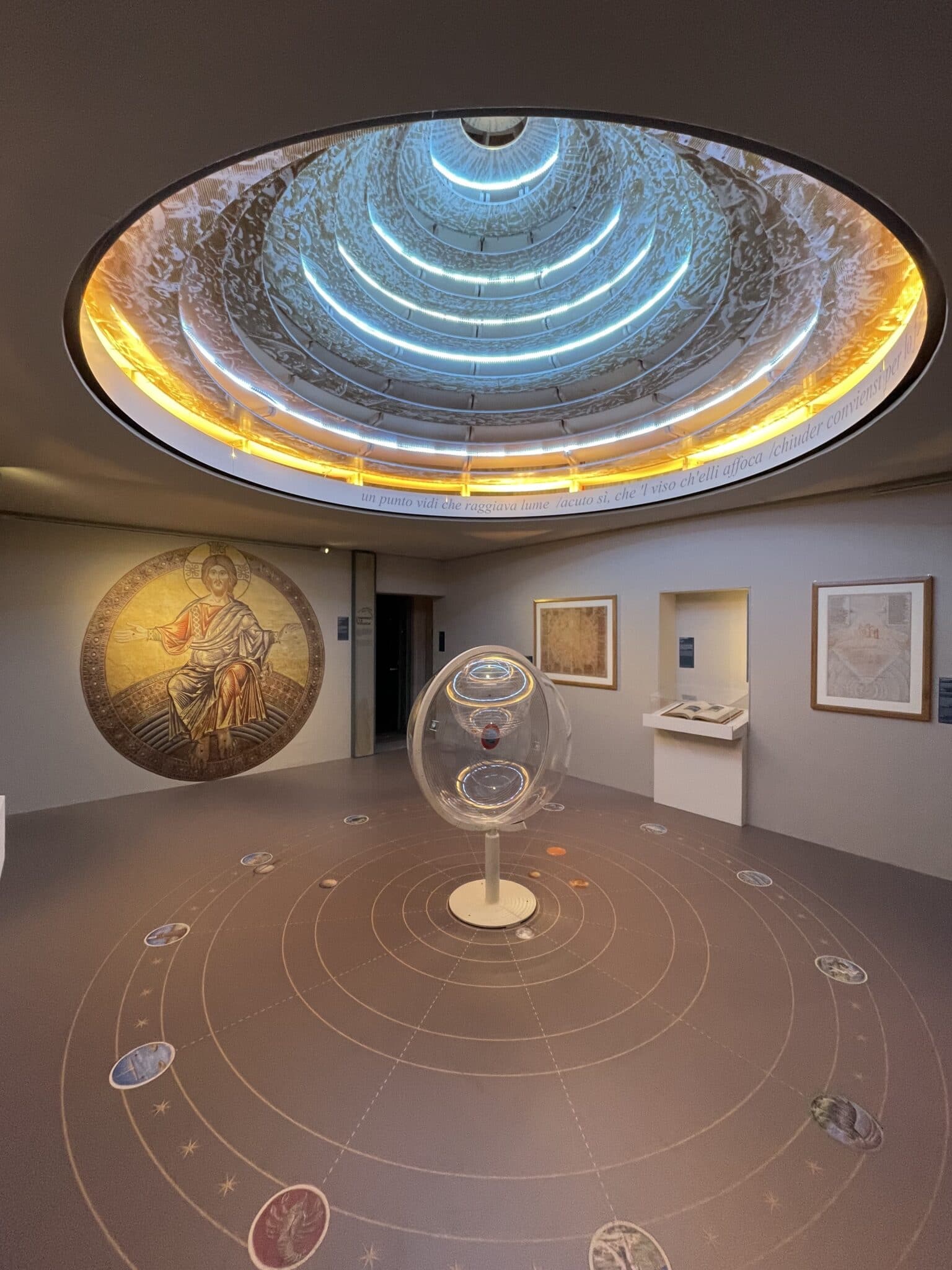 Obiettivo dell’esposizione aperta fino al 6 marzo 2022 è quello di raccontare le basi scientifiche su cui poggia la complessa architettura della Divina Commedia. Dante anche scienziato quindi? Non proprio ma sicuramente uno scrittore che aveva competenze scientifiche che ha usato per raccontare un viaggio nell’Oltretomba, luoghi che non esistono o meglio che nessuno ha mai visto e che diventano reali nell’immaginazione dei lettori propri grazie alla precisa descrizione che ne fa il poeta.