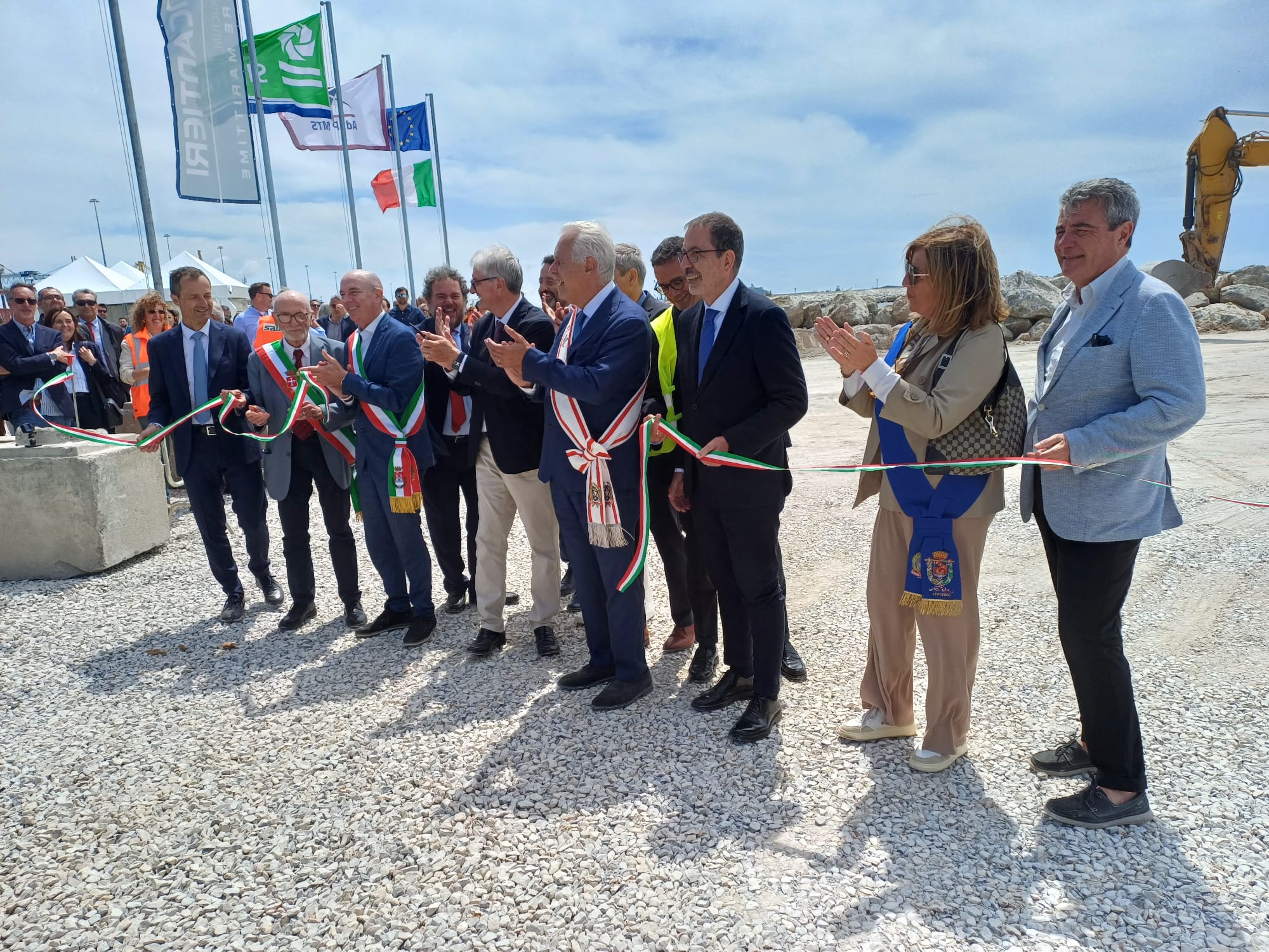 Posa della prima pietra per la realizzazione delle opere a mare della darsena Europa, il grande ampliamento del porto di Livorno per l’incremento del traffico merci. Cerimonia lunedì 12 maggio, a cui ha partecipato il presidente della Regione Eugenio Giani: “È un’opera statale ma ci mettiamo volentieri dei nostri fondi perché quest’opera significa lo sviluppo di Livorno e della Toscana. La navigazione sta ritornando ad essere una delle modalità più importanti di interscambio nel mondo. Livorno con questa opera entra nel novero dei grandi porti internazionali. Il pescaggio, da dodici metri e mezzo, arriverà a venti metri. Come Toscana sentiamo l’orgoglio del taglio del nastro di una delle opere che segneranno i prossimi decenni”.