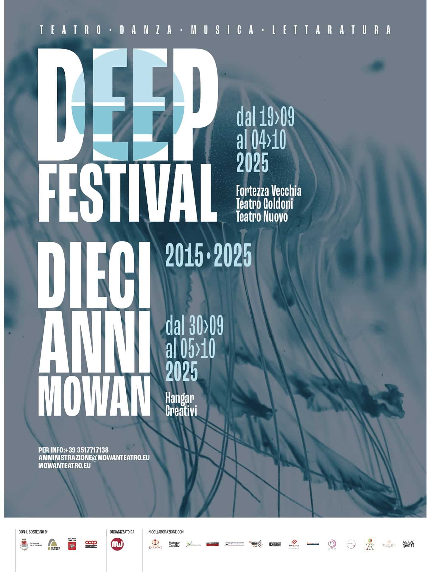 Dal 19 settembre al 4 ottobre torna l’ottava edizione del Deep Festival, a cura dall’Associazione Culturale mowan teatro, che si svolgerà principalmente alla Fortezza Vecchia di Livorno, con appuntamenti anche al Teatro Nuovo di Pisa e al Teatro Goldoni di Livorno.