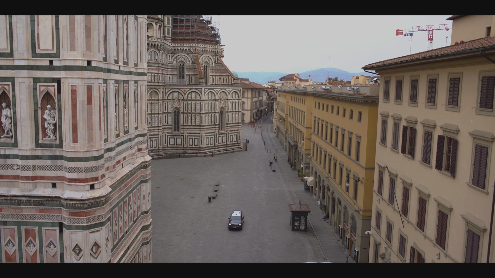 La luce nel documentario illumina strade vuote, le finestre di Ponte Vecchio sono sbarrate e gli Uffizi deserti. Il fiume Arno fa il suo corso, nonostante tutto, e lambisce le sponde di lungarni desolati. Una condizione inedita, inimmaginabile per una città che straborda di turisti giorno e notte e che ora si trova sola con i suoi monumenti.