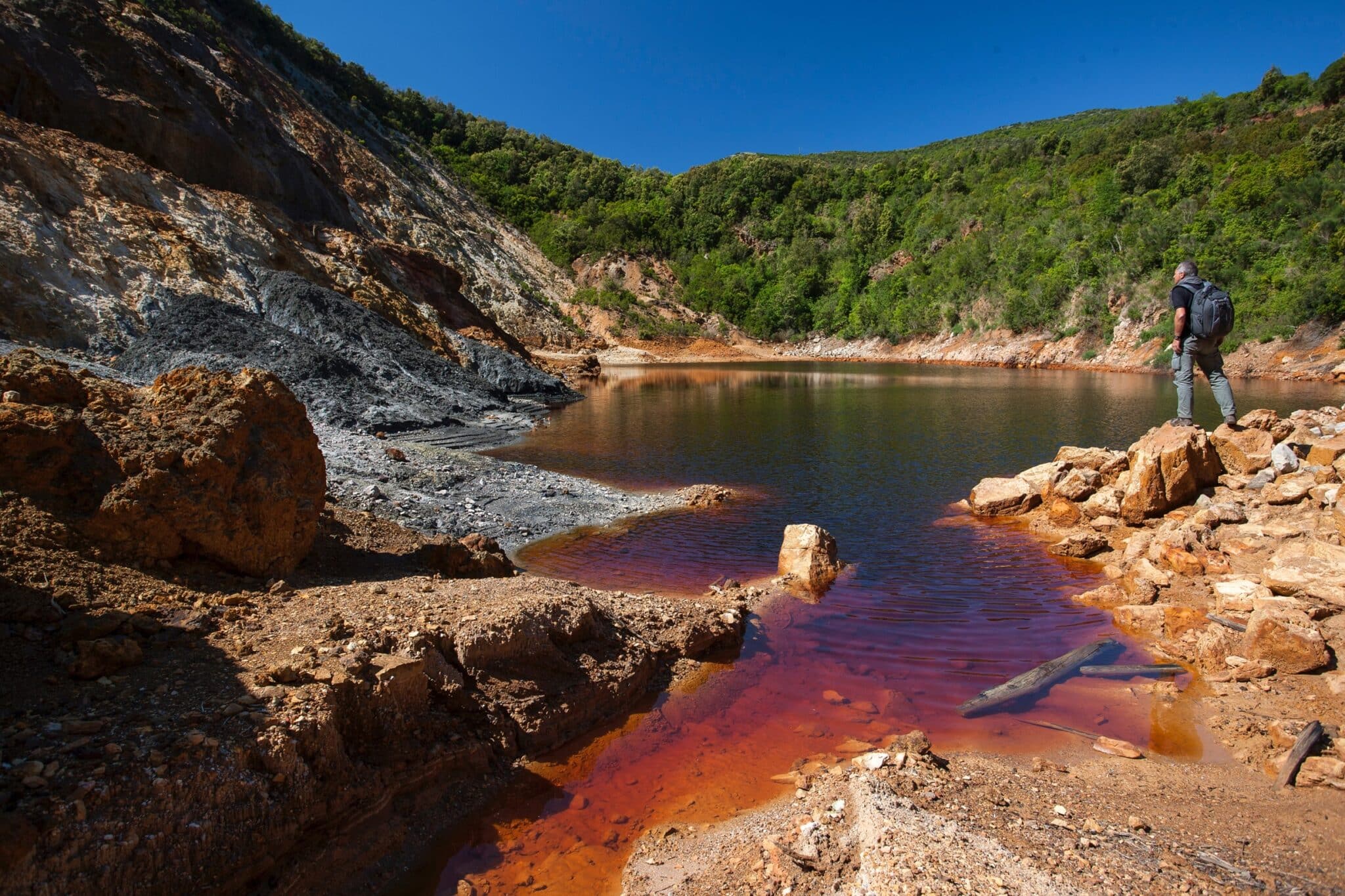 Il Parco Minerario include il giacimento di Rio Marina, la miniera più antica dell’Elba che si trova a ridosso del paese e si estende a nord fino al Monte Giove. Qui venivano estratti principalmente ematite e limonite e presenta una profonda escavazione a cielo aperto dove si è formato un laghetto di colore rosso-bruno e dai riflessi violacei, le cui acque sono estremamente ricche di sali di ferro.
