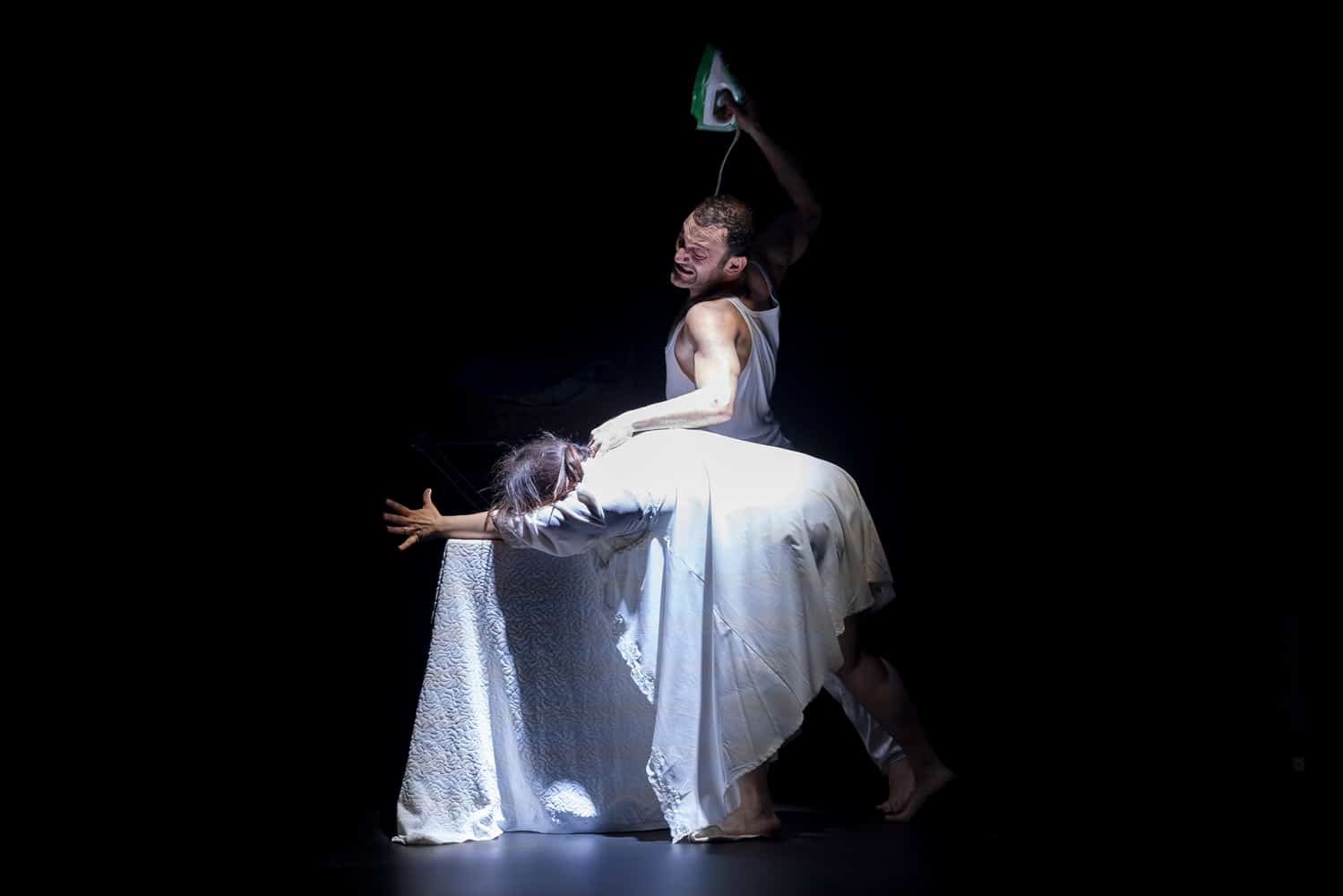 Nasce da una lunga riflessione. Lo spettacolo inizia dalla fine, con la protagonista morta, con la testa spaccata dal ferro da stiro con cui è stata colpita. Un oggetto scelto non a caso, perché in questo tipo di omicidi le armi – coltelli, pietre, oggetti della casa – sono quelle più semplici da reperire… La Moglie è stata uccisa e il sangue le è colato sul viso. Che ne facciamo di tutto quel sangue? Durante le prove, a un certo punto, le facevo lavare il viso e lei ricominciava la sua giornata come sempre. Poi, però, ho sentito la mancanza di quel sangue. Ho pensato che quelle donne, nelle loro case, vengono tormentate continuamente e finiscono per ritrovarsi piene di ferite che perdurano: è l’insulto di uno stupro, sono i segni delle botte prese per tutta una vita. Allora mi sono detta che, forse, lei doveva rassettare il letto con la faccia sporca di sangue… Ciononostante, alla fine, tutti noi che guardiamo lo spettacolo, con il trascorrere del racconto finiamo per non notare più quel sangue. Ecco, l’atrocità, la cosa peggiore che facciamo, è proprio dimenticarci di quelle ferite.