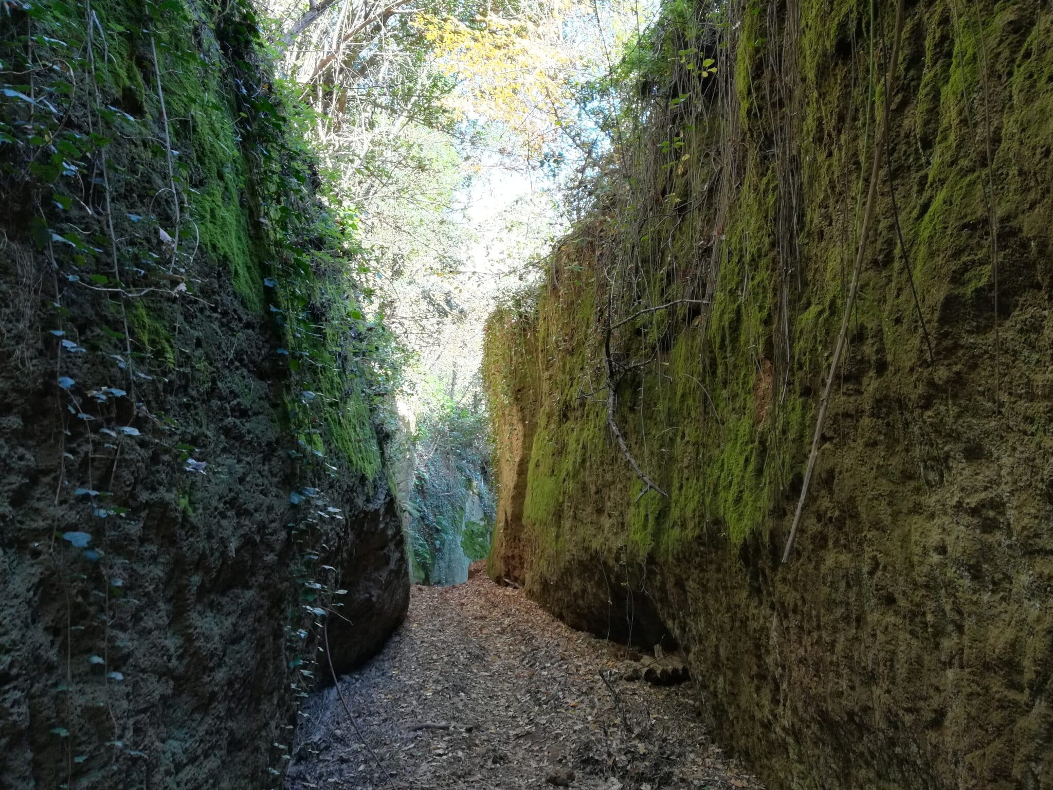 Qui infatti si snoda il Parco Archeologico Città del Tufo, un paesaggio sospeso nel tempo dove la roccia vulcanica racconta millenni di storia. Cuore del parco sono le Vie Cave, spettacolari corridoi che gli Etruschi scavarono nelle colline di tufo: veri e propri canyon con pareti che superano i venti metri, ancora oggi avvolti nel mistero, non si sa infatti se fossero strade di collegamento, necropoli o forse canali per l’acqua.