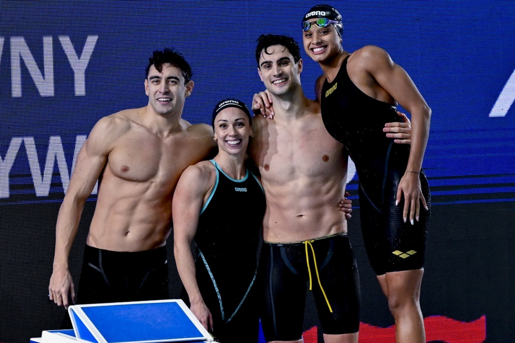 Un’impresa che profuma di storia, quella firmata dalla 4×50 stile libero mixed azzurra agli Europei in vasca corta. L’Italia vince l’oro e abbatte il record del mondo, nuotando in 1’27”26, sette centesimi più veloce del primato stabilito dalla Francia ai Mondiali di Melbourne (1’27”33). Una gara dominata dal primo all’ultimo metro, capace di accendere il pubblico e di arricchire ulteriormente il già luminoso percorso del nuoto italiano.