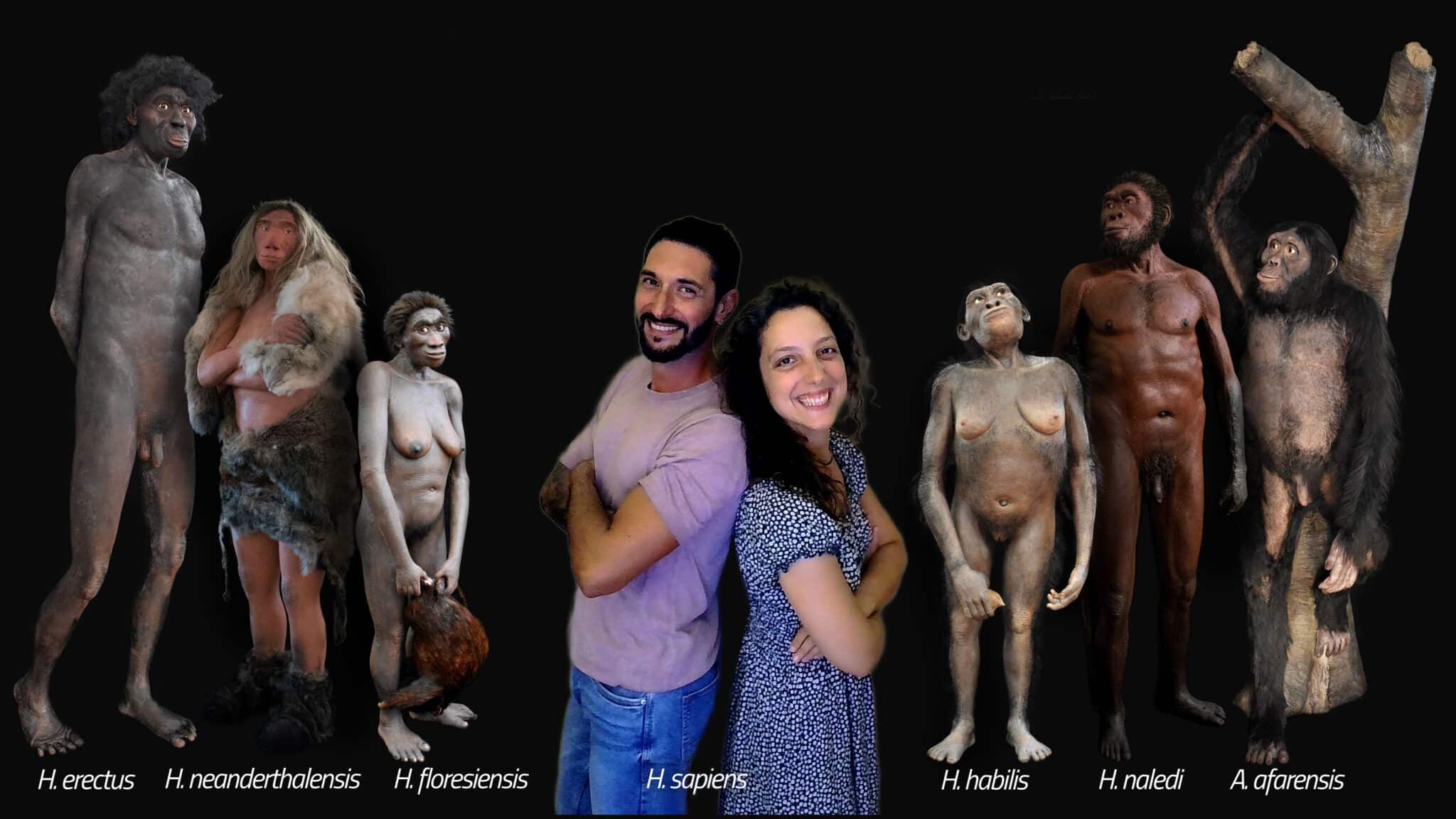 I protagonisti assoluti dell’allestimento sono le ricostruzioni a grandezza naturale in silicone di sei specie di ominini, un gruppo di primati che comprende l’uomo e i suoi antenati estinti.