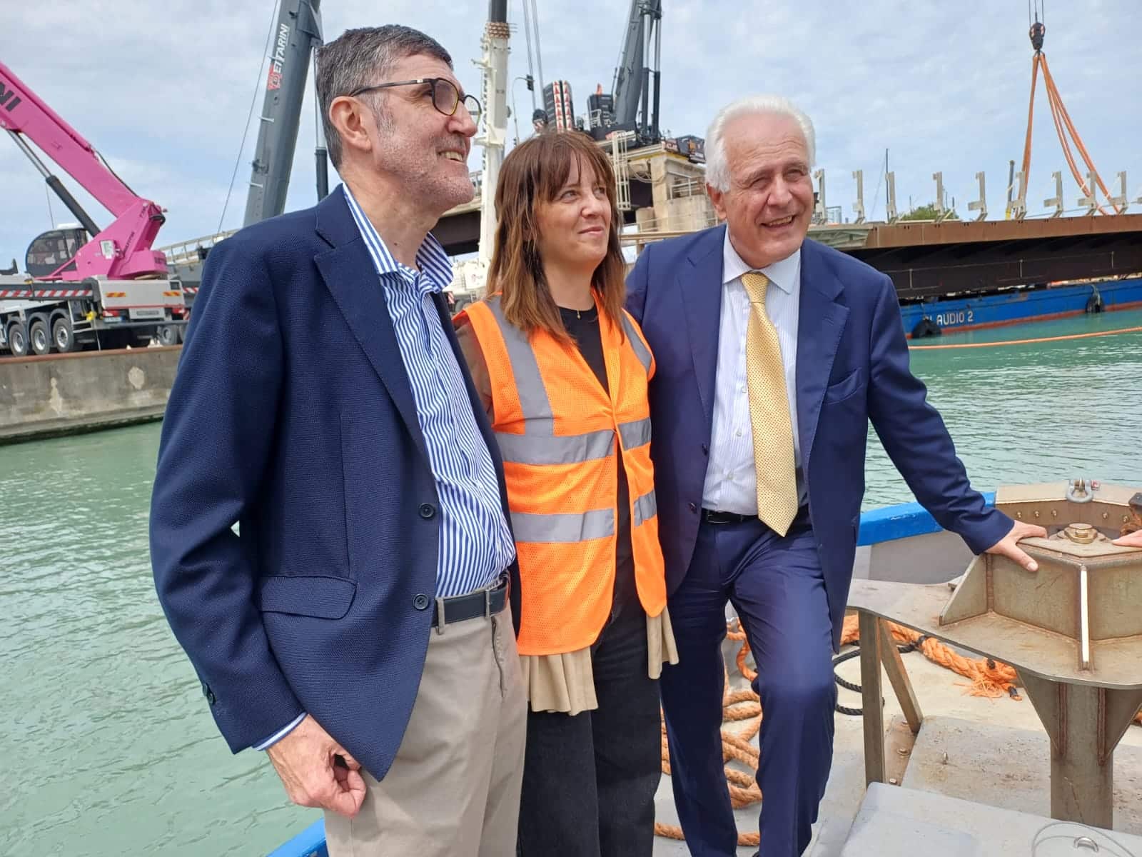 Sopralluogo del presidente al cantiere in occasione della ricollocazione del segmento danneggiato: “Adesso occorre l’impegno, condiviso con l’Autorità Portuale, a procedere rapidamente con la progettazione e la realizzazione della nuova infrastruttura”
