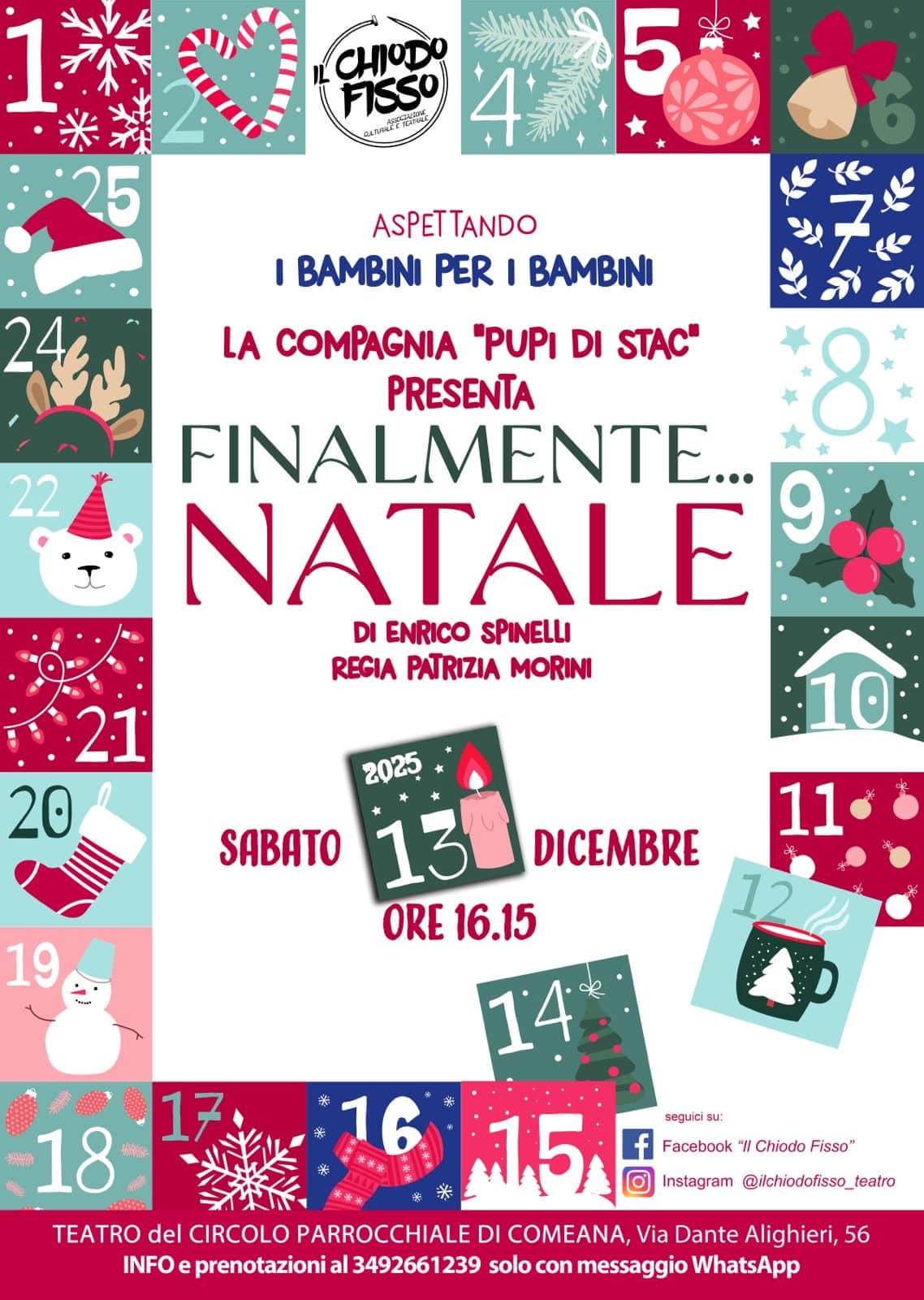 “Finalmente…Natale” sarà in scena sabato 13 dicembre al Teatro parrocchiale di Comeana: uno spettacolo che prende spunto dal celebre “Calendario dell’Avvento”