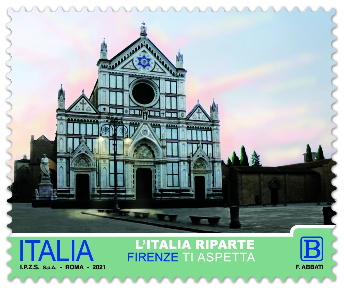 “L’Italia riparte…Firenze ti aspetta”. Sul francobollo c’è una piazza Santa Croce deserta e bellissima e poi questa frase, che suona come una speranza. È l’emissione, da parte del ministero dello Sviluppo economico, di un francobollo ordinario dedicato alla città all’interno della serie tematica “Il Patrimonio artistico e culturale italiano”. Il francobollo è stampato dall’Istituto Poligrafico e Zecca dello Stato Spa su carta bianca, con bozzetto a cura del Centro Filatelico della Direzione Operativa dell’Istituto Poligrafico e Zecca dello Stato.