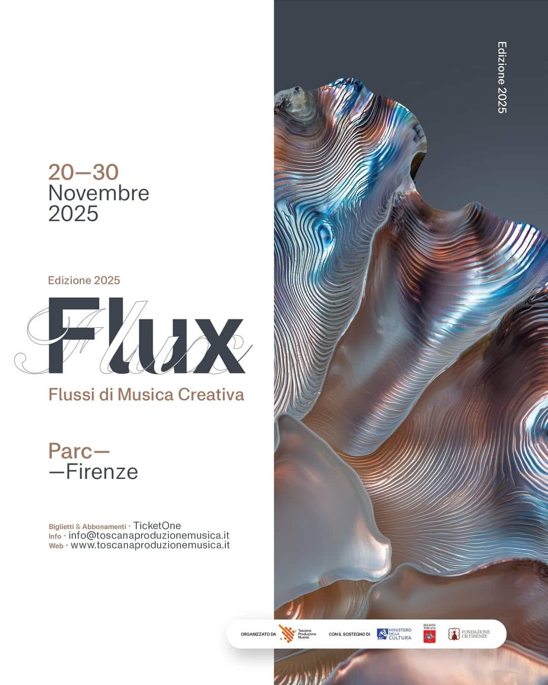Sostenuto da Ministero della Cultura, Regione Toscana e Fondazione CR Firenze, FLUX conferma la sua vocazione: attraversare e superare i confini tra i generi, aprendo spazio a nuove forme di ascolto e alla pluralità delle avanguardie contemporanee.