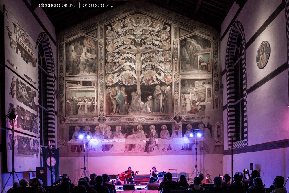 Varie le occasioni per godere delle architetture antiche che si conservano in Santa Croce, come quella del Chiostro del Brunelleschi dove venerdì 27 si susseguiranno in una girandola musicale il concerto degli Handlogic, vincitori dell’edizione 2016 del Rock Contest (ore 20); gli Hobby Horse, trio collettivo che propone un imprevedibile mix di stili e generi, incontro a tratti violento fra linguaggi musicali, passando dalla slam poetry a hip hop, bossa nova, psichedelia, prog rock, techno e musica da camera (ore 21.00) e infine il duo di Marina Rei & Paolo Benvegnù, dove i due artisti del panorama italiano giocano e sperimentano, come fosse un dialogo confidenziale tra due amici proponendo “Canzoni contro la disattenzione in box” (ore 21.45).
