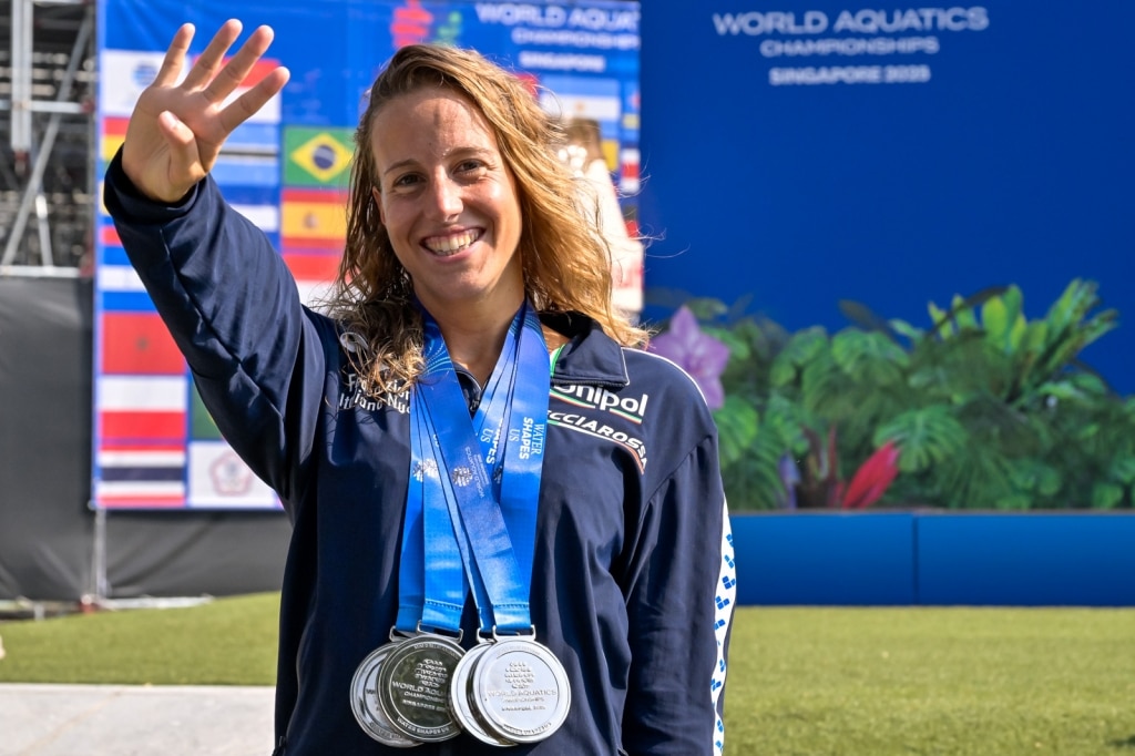 Ginevra Taddeucci si prende la scena ai Mondiali di nuoto in acque libere 2025 a Singapore. Quattro gare, quattro podi: l’azzurra fiorentina classe 1997 diventa la best medallist della rassegna iridata, conquistando l’argento nella 3 km sprint, nella 5 e nella 10 chilometri individuali, oltre che nella staffetta mista 4×1.5 km con Barbara Pozzobon, Marcello Guidi e Gregorio Paltrinieri.