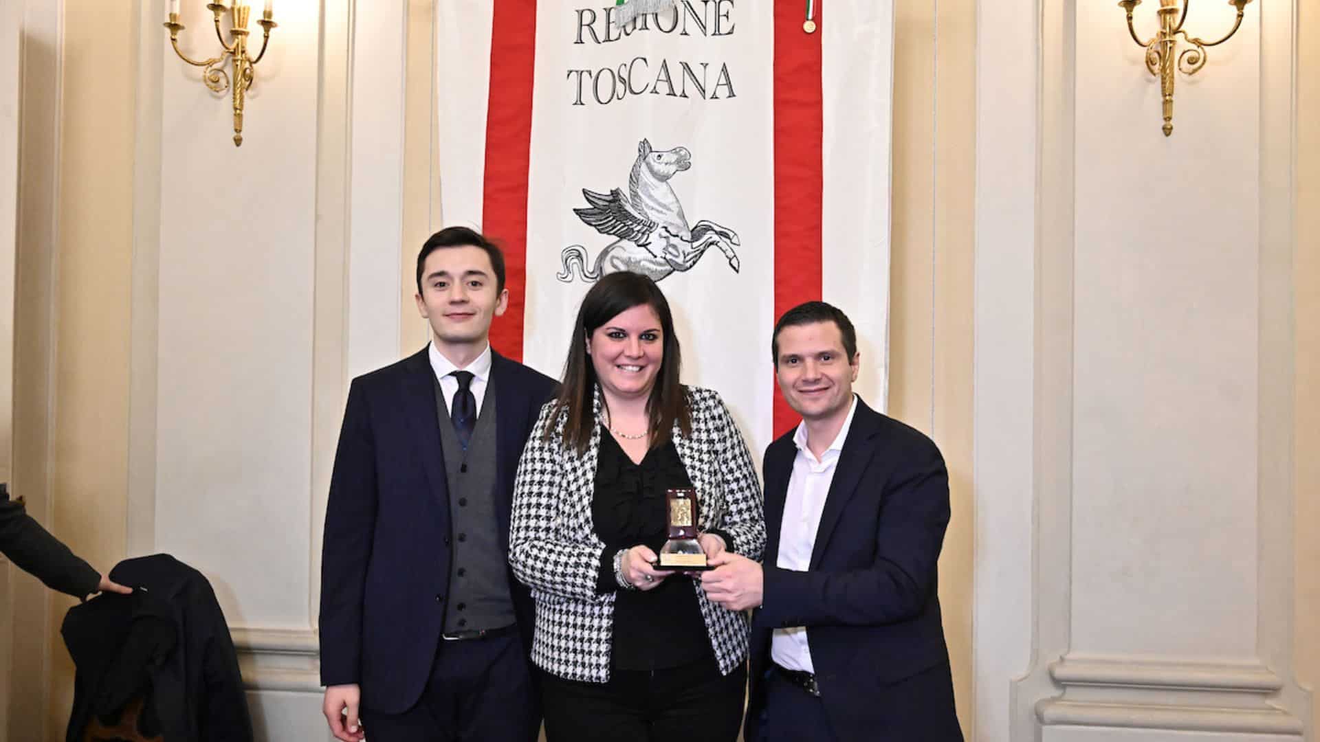 A consegnare il premio il presidente di Pa Social Francesco Di Costanzo all’assessora regionale all’istruzione e all’Università Alessandra Nardini e al portavoce del presidente Giani, Bernard Dika, a Palazzo Strozzi Sacrati.