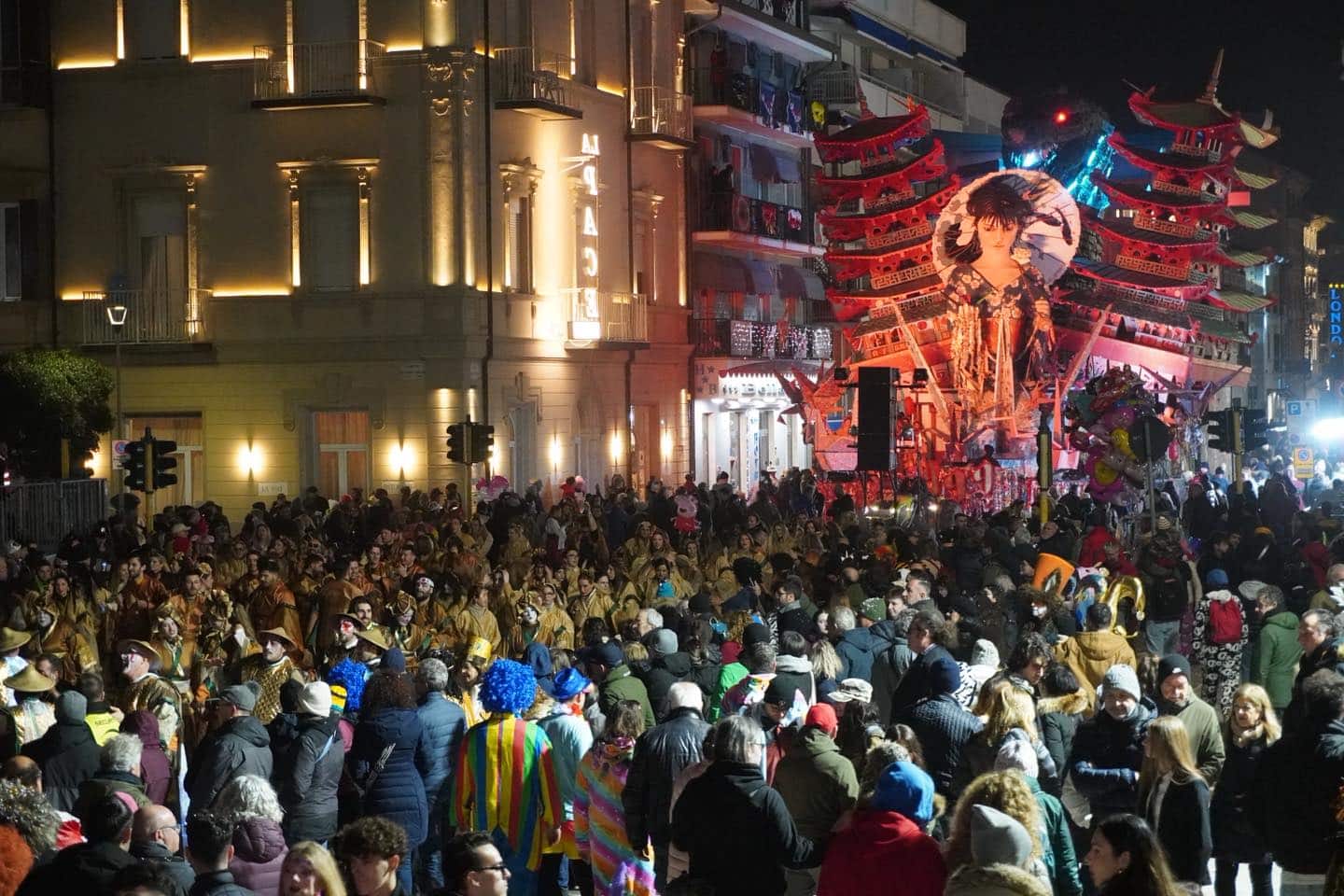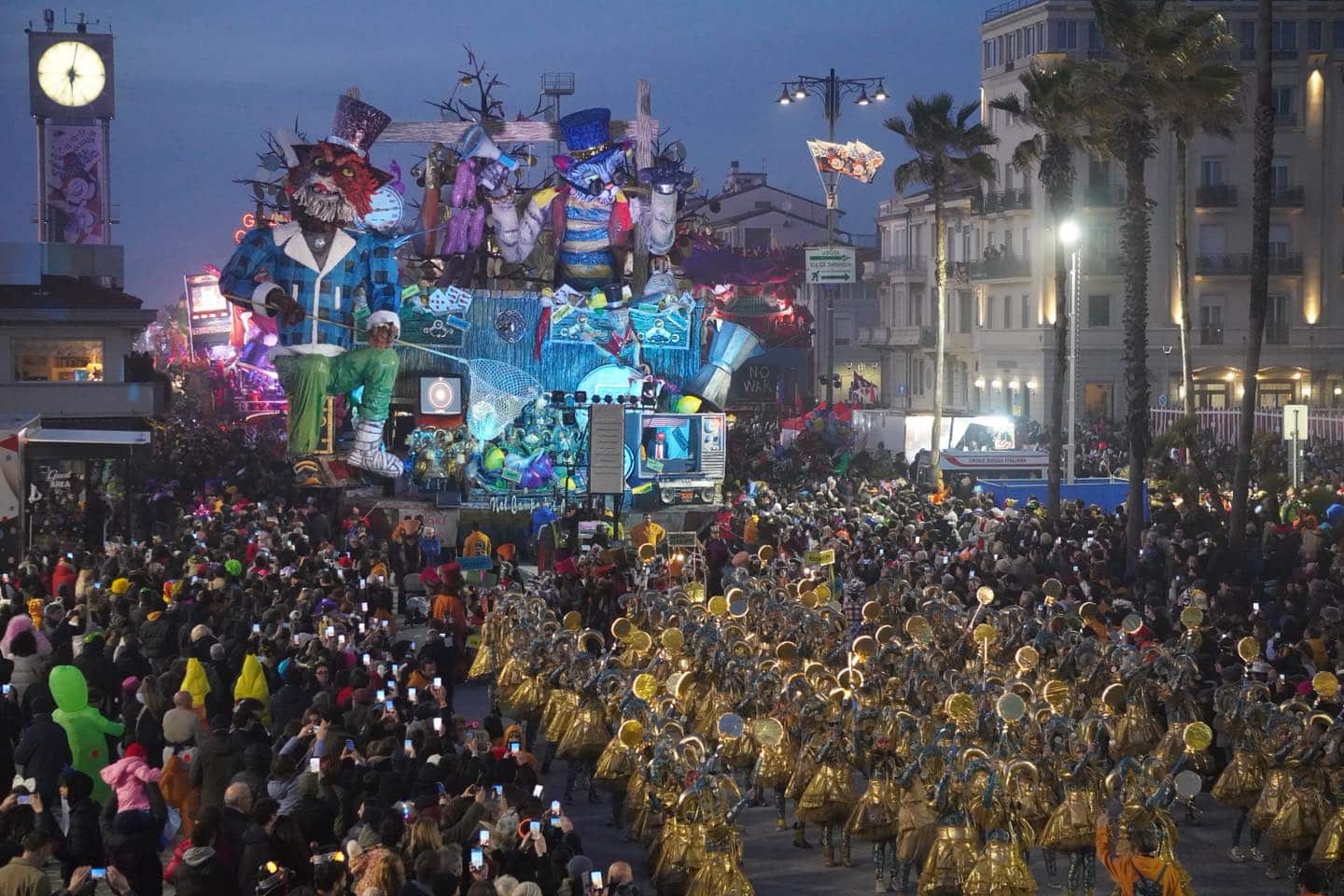 Il corso sul lungomare, particolarmente suggestivo con la sfilata dei giganti di cartapesta in notturna, è stato preceduto da una riflessione sui grandi temi di attualità, dalla lotta alla violenza di genere, argomento sollecitato dalla Casa delle Donne di Viareggio, a un minuto di silenzio per un appello universale per la fine di tutti i conflitti su richiesta del Coordinamento Versilia per la Palestina e delle associazioni per la Pace. È stato un raccoglimento in ricordo di tutte le vittime civili di tutte le guerre.