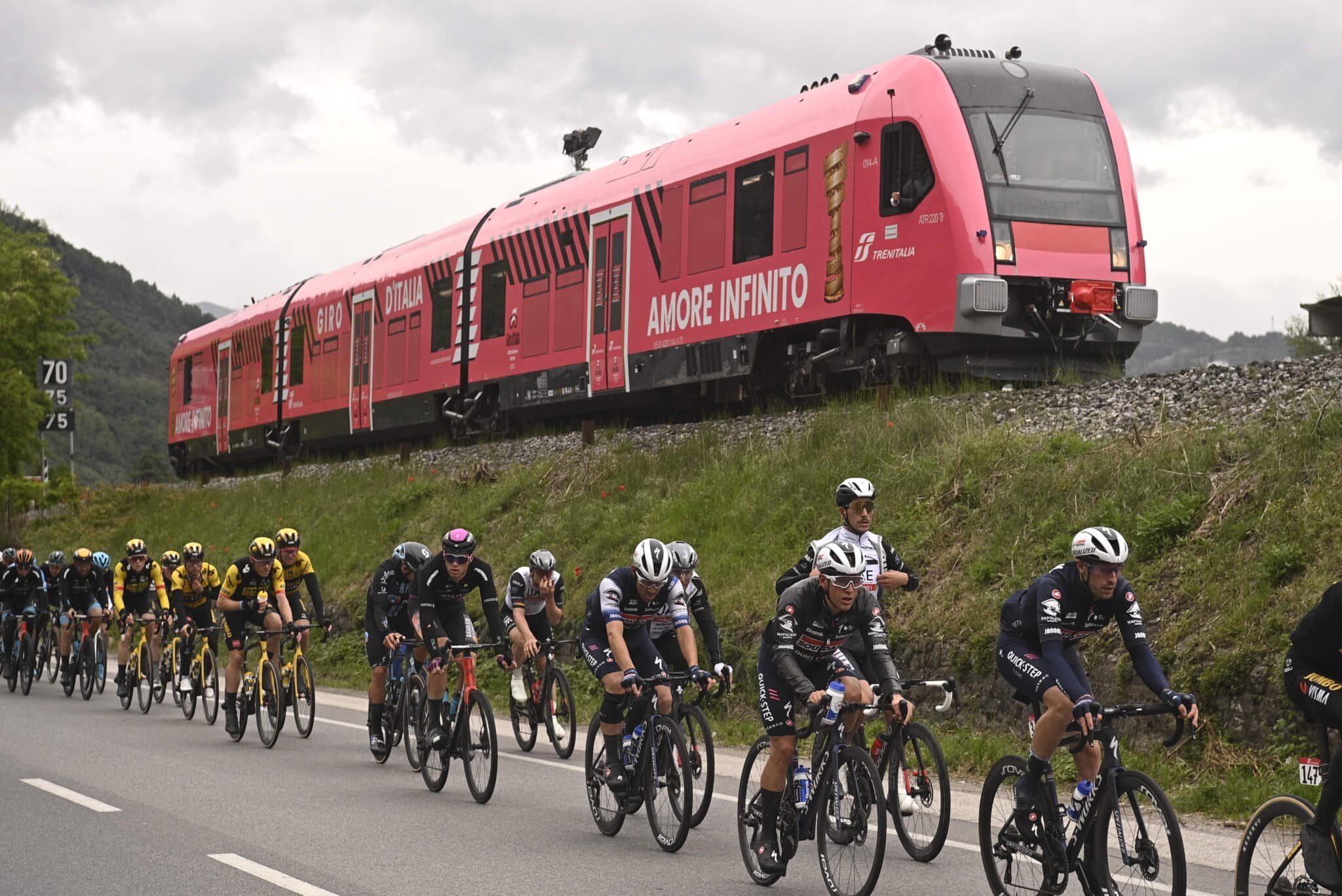 Il Trofeo Senza Fine destinato al vincitore del Giro d’Italia 2023 viaggia su un treno Swing del Regionale di Trenitalia tra Bagni di Lucca e Lucca. Il convoglio ha una livrea rosa in onore della gara ciclistica italiana più attesa ed è accanto agli atleti impegnati nella decima tappa da Scandiano a Viareggio nella tratta ferroviaria tra Bagni di Lucca e Ponte a Moriano, attraversando il Ponte del Diavolo.